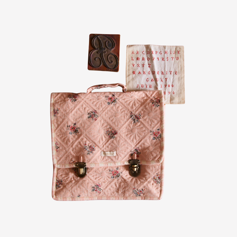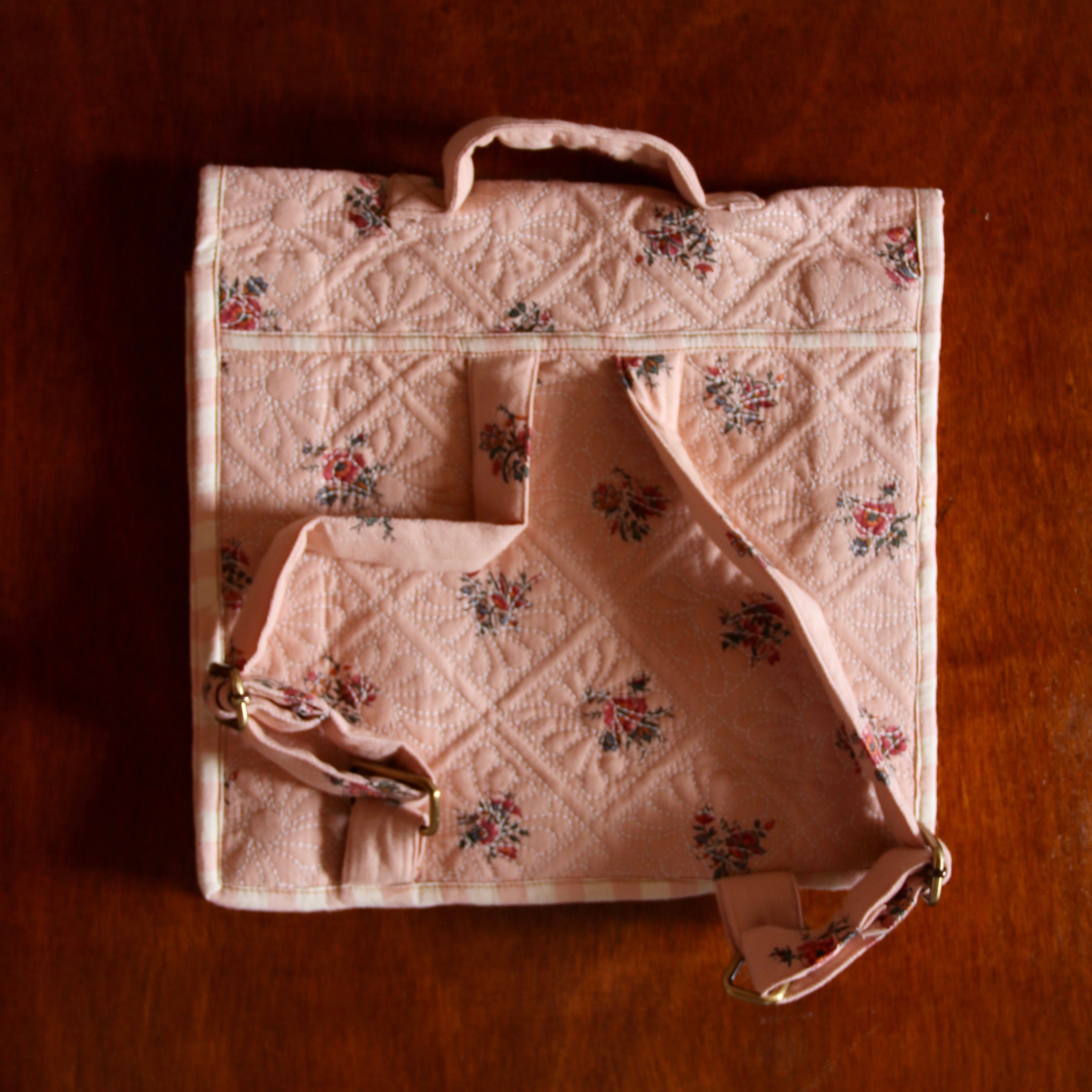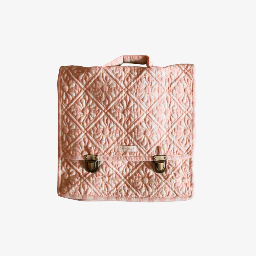 Bonjour Diary Quilted school bag, Pink Garden flowers print Denim
