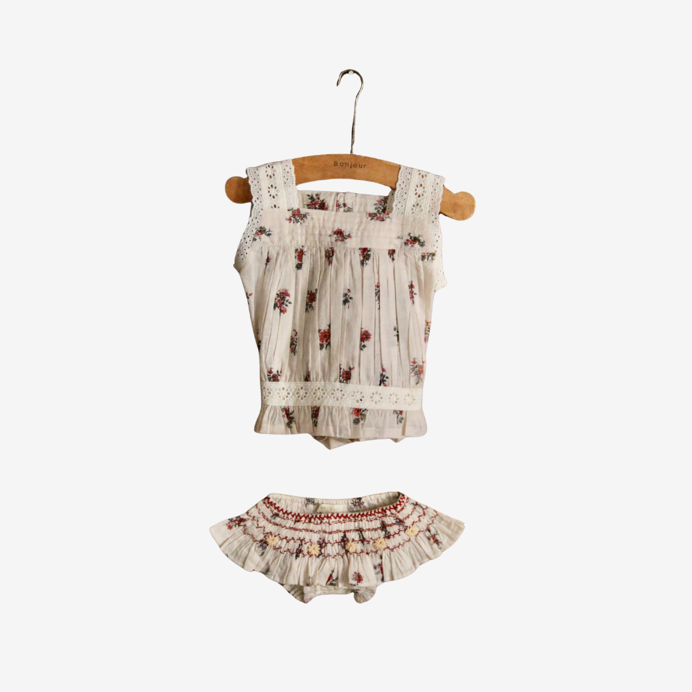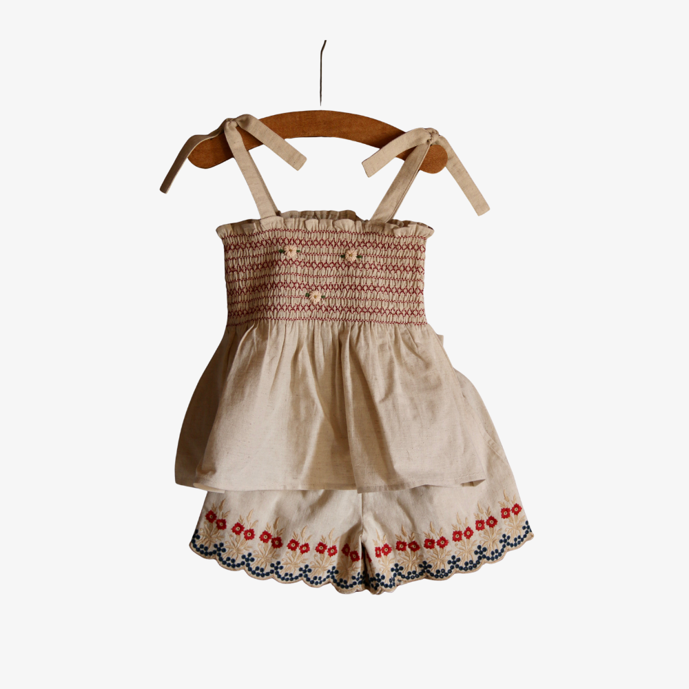 Bonjour Diary Shorts & top set, Natural cotton flex with multi color eyelet emb