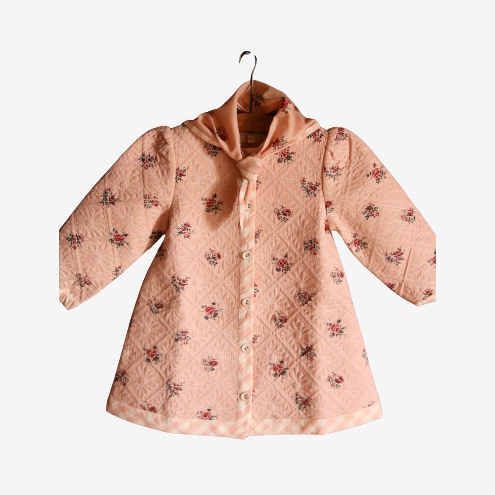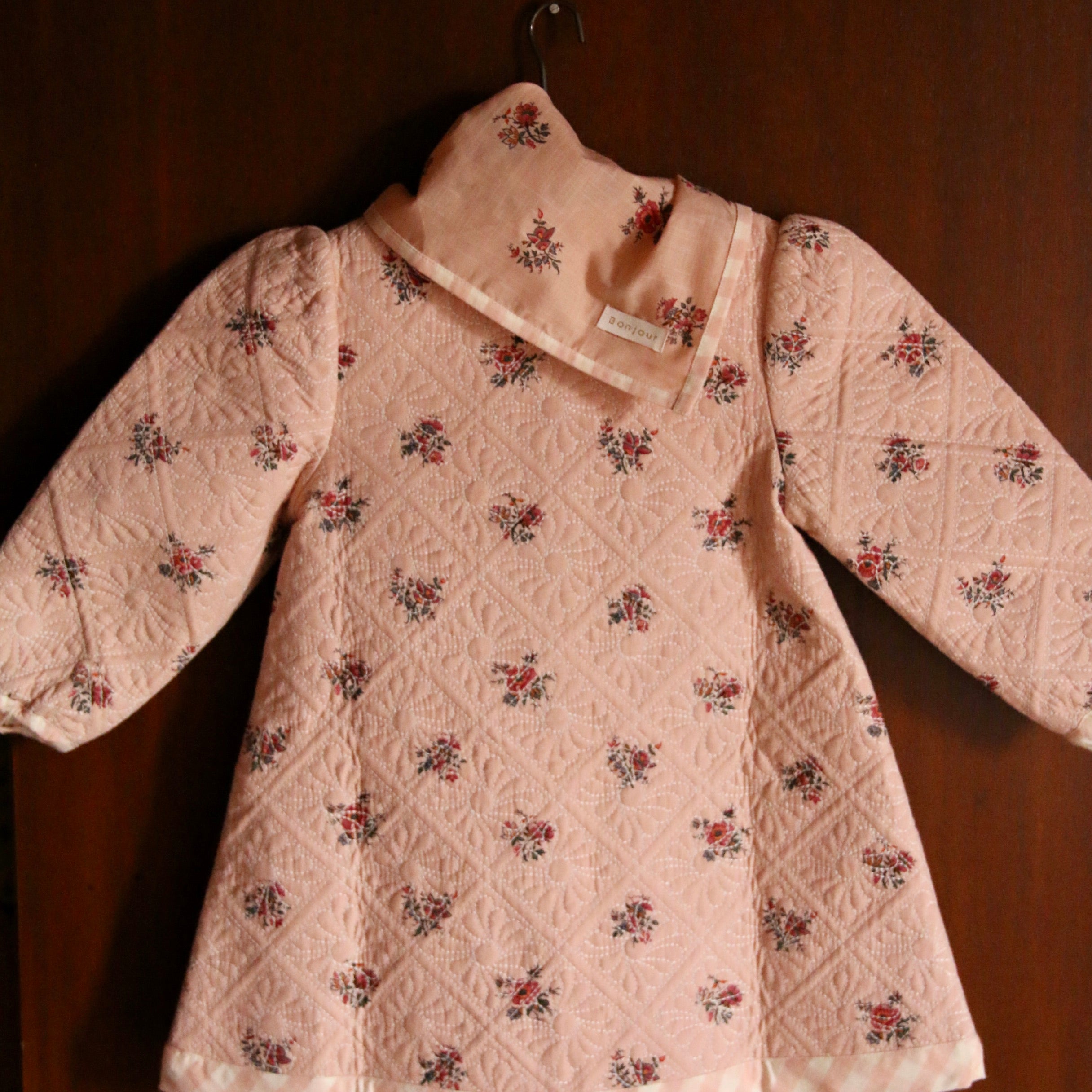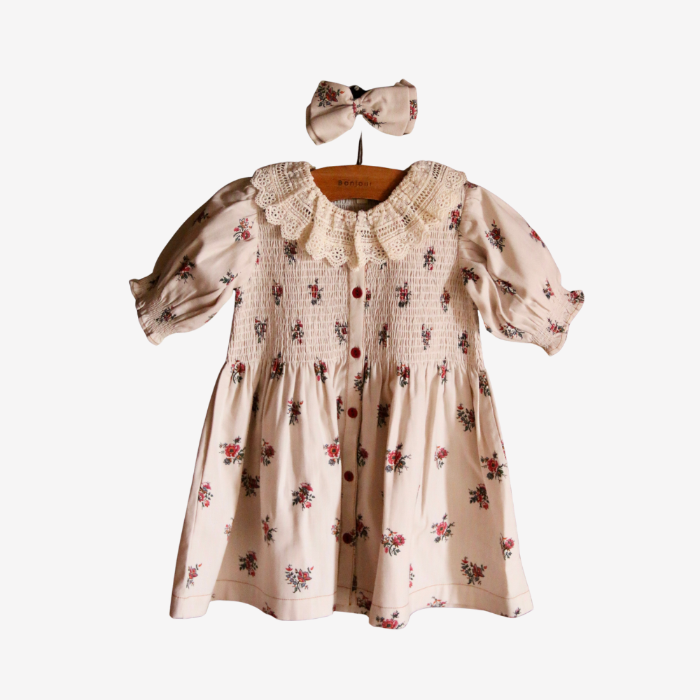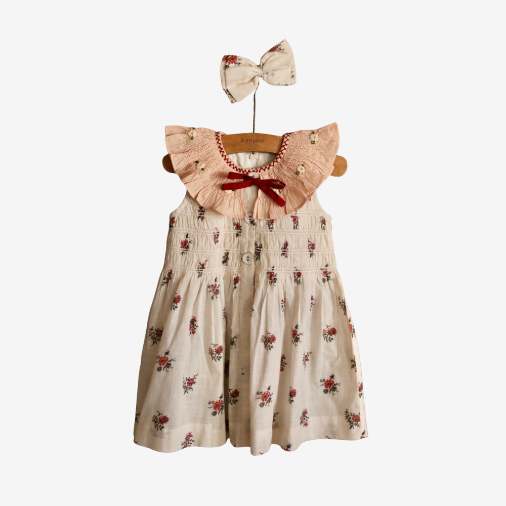 Bonjour Diary Baby Romper with scarf, Pink garden flowers print cotton voile
