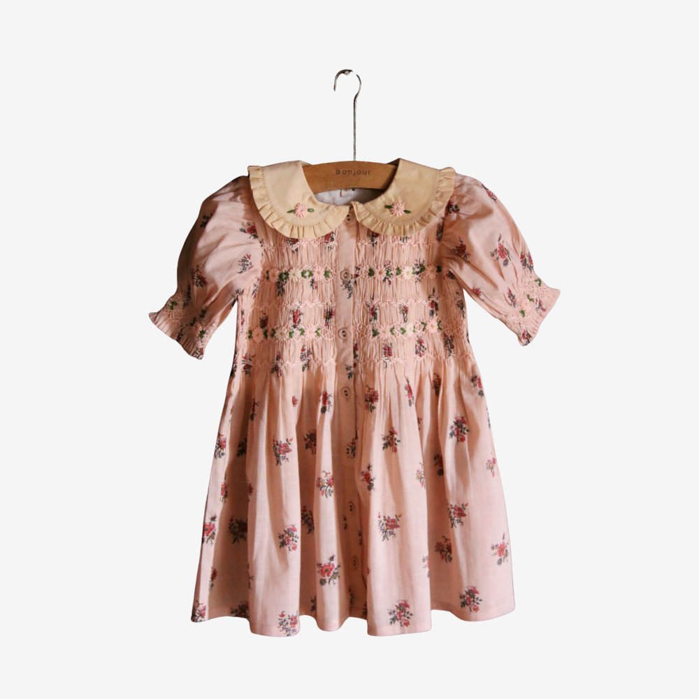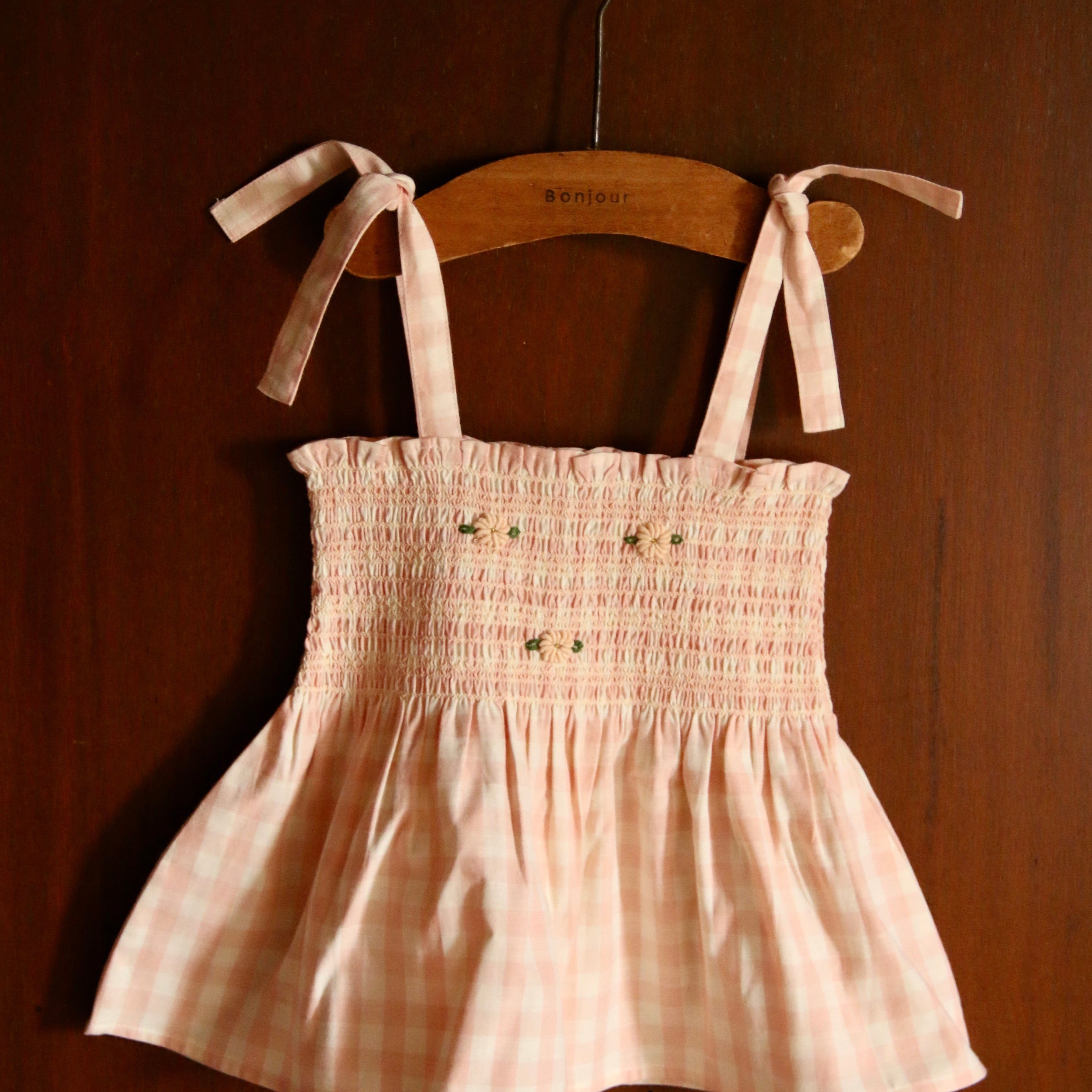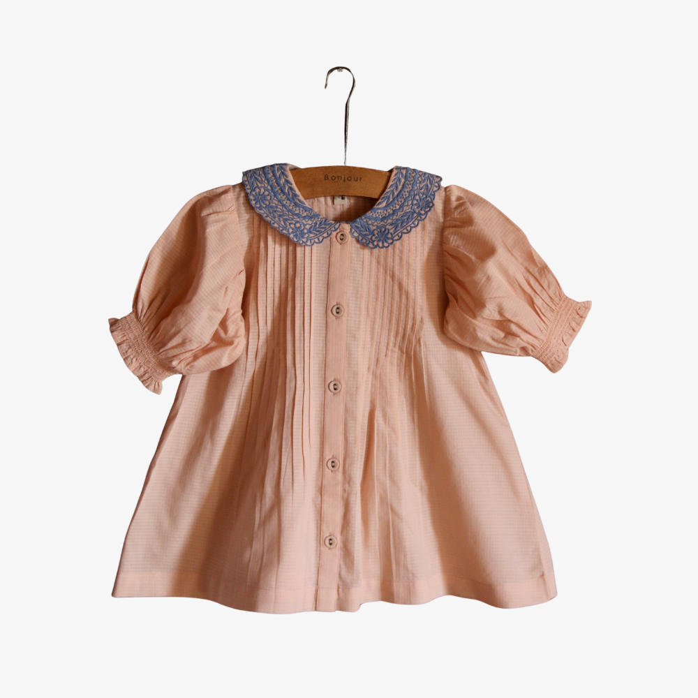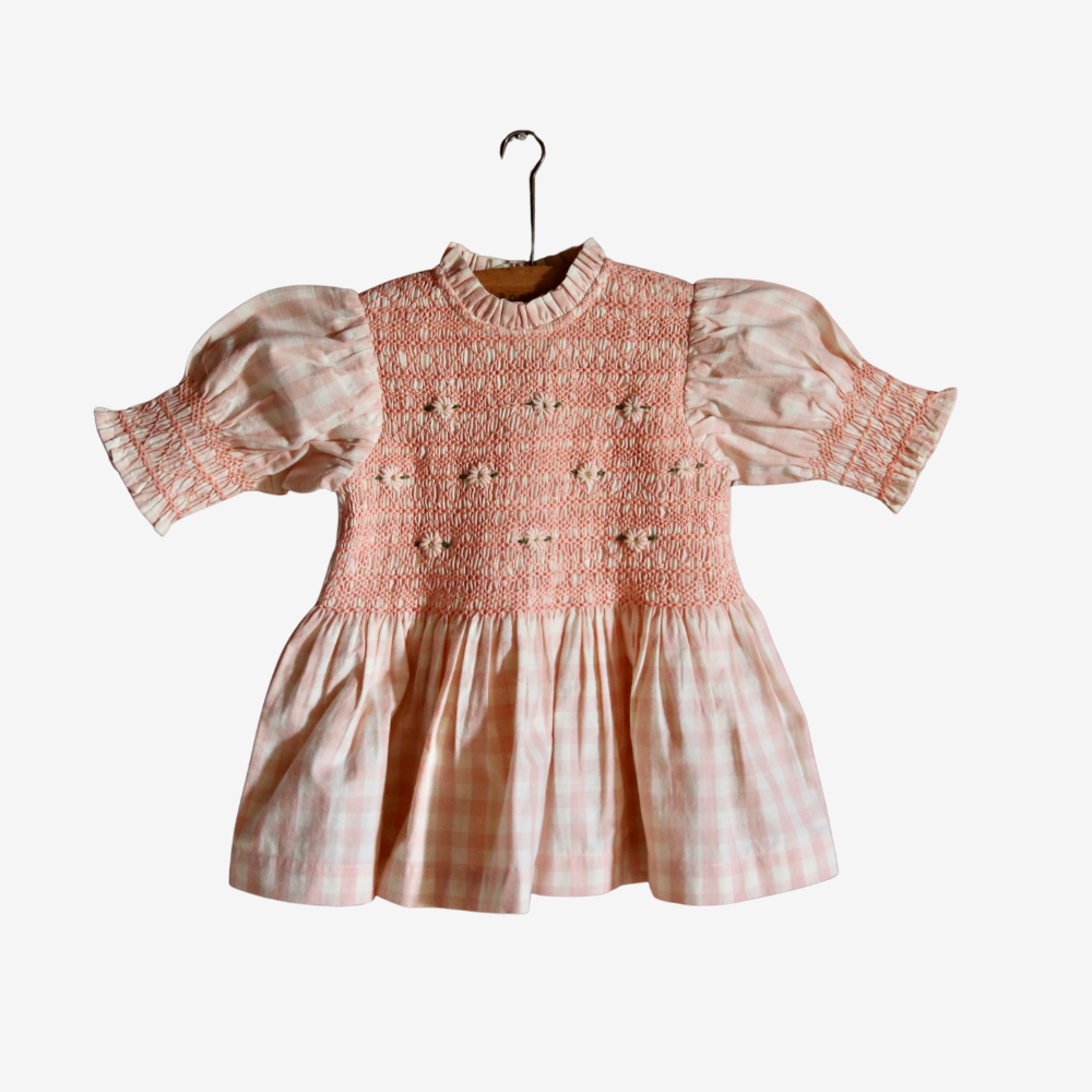 Bonjour Diary Handsmocks blouse, Pink vichy