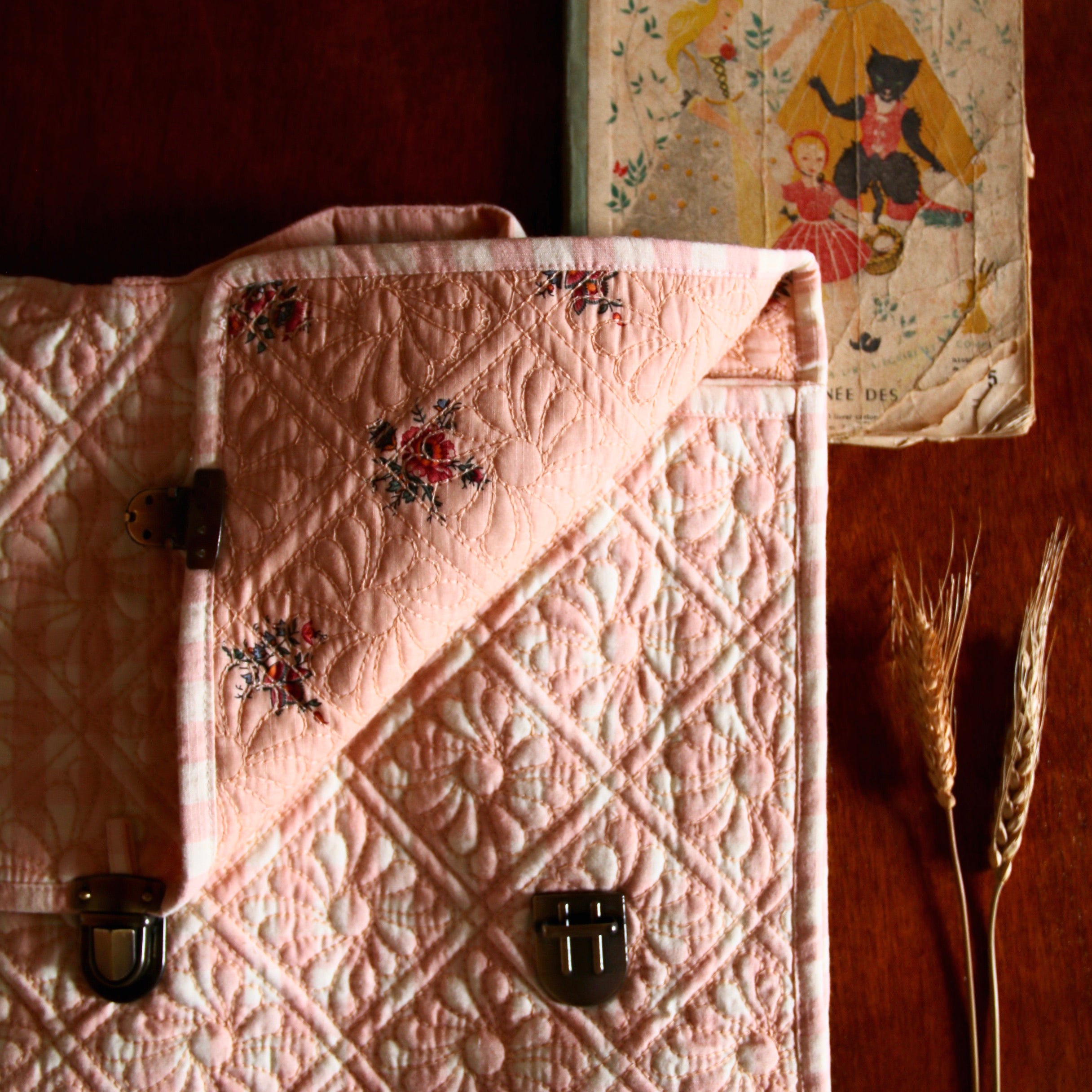 Bonjour Diary Quilted school bag, Pink vichy front & piping