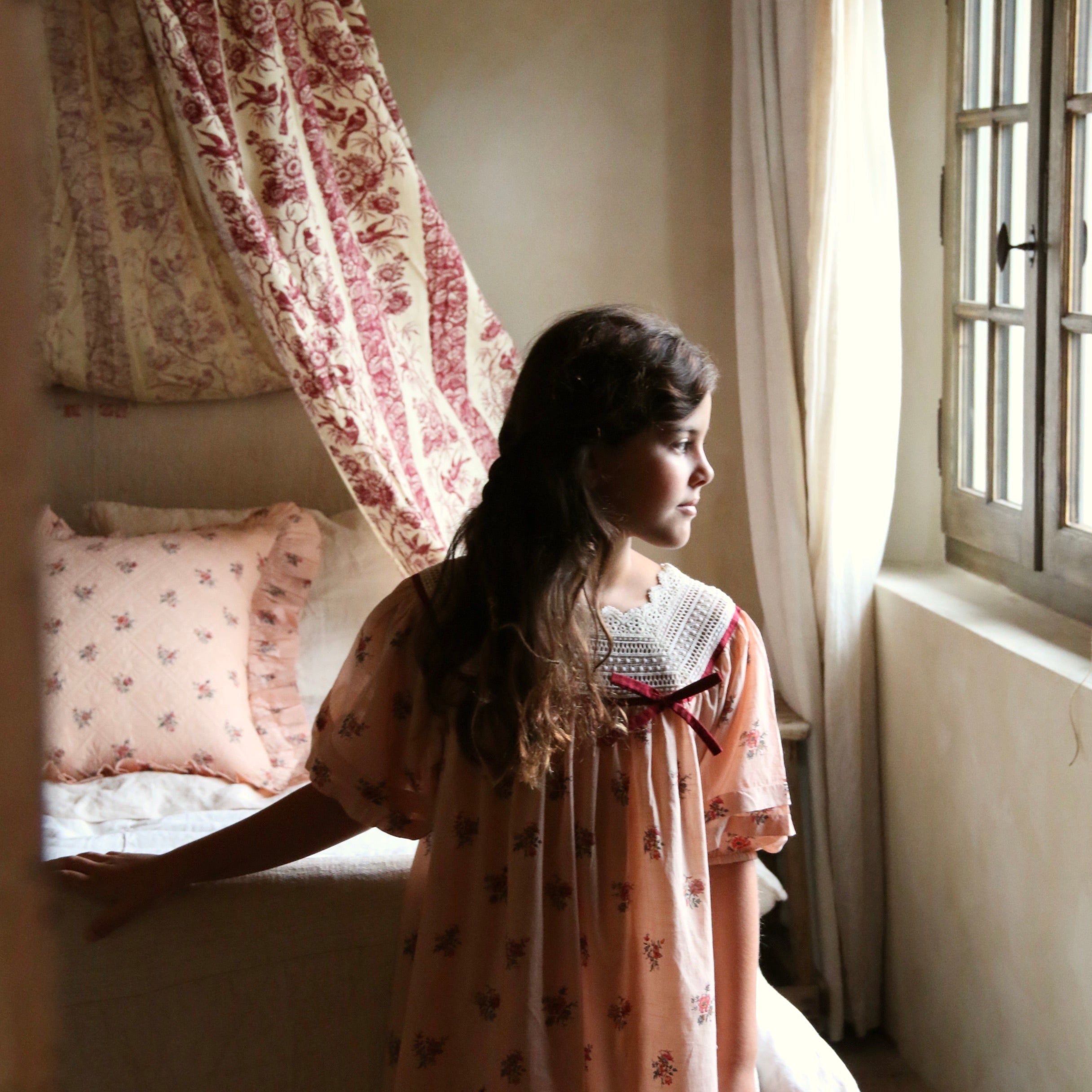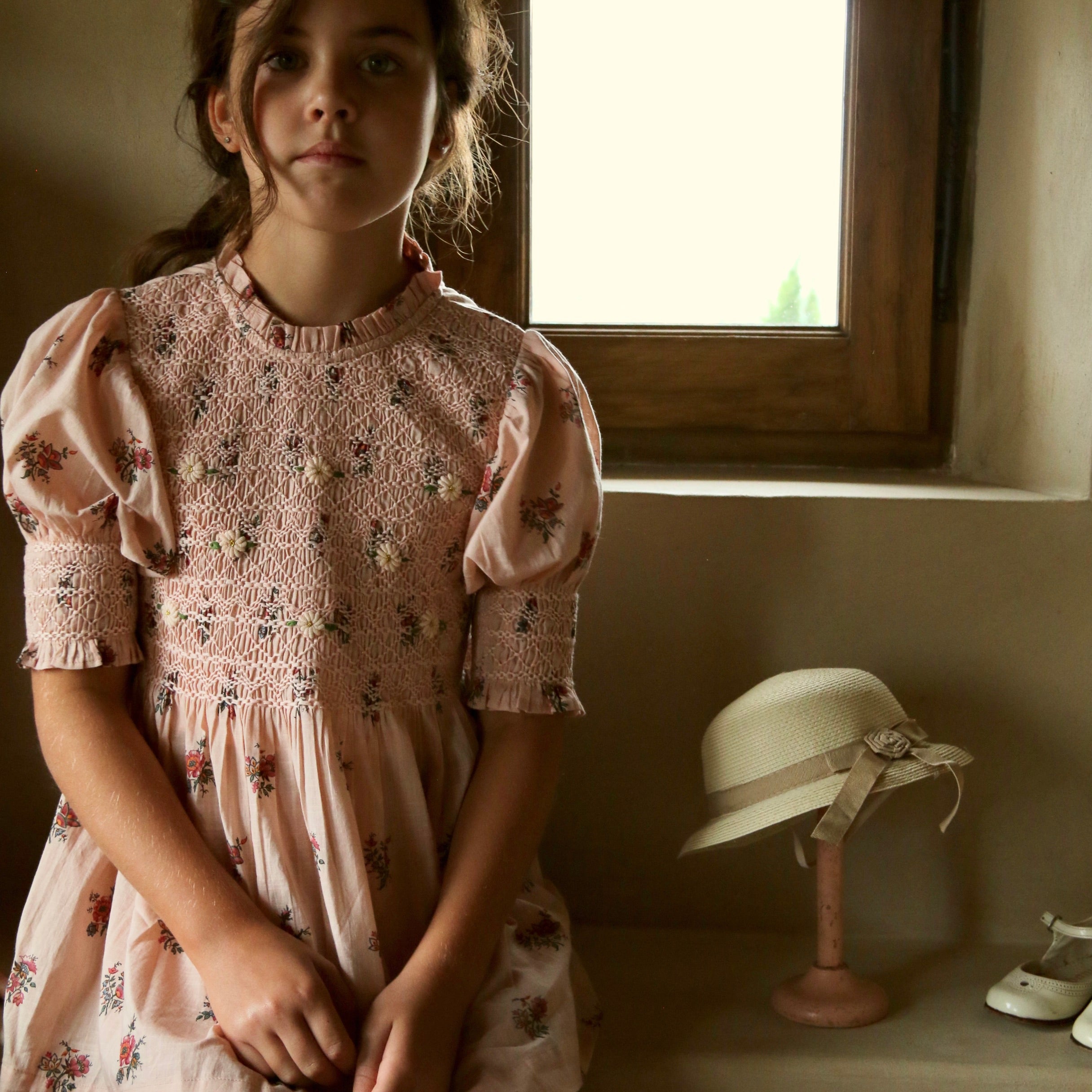 Bonjour Diary Princess dress, Pink garden flowers print cotton voile