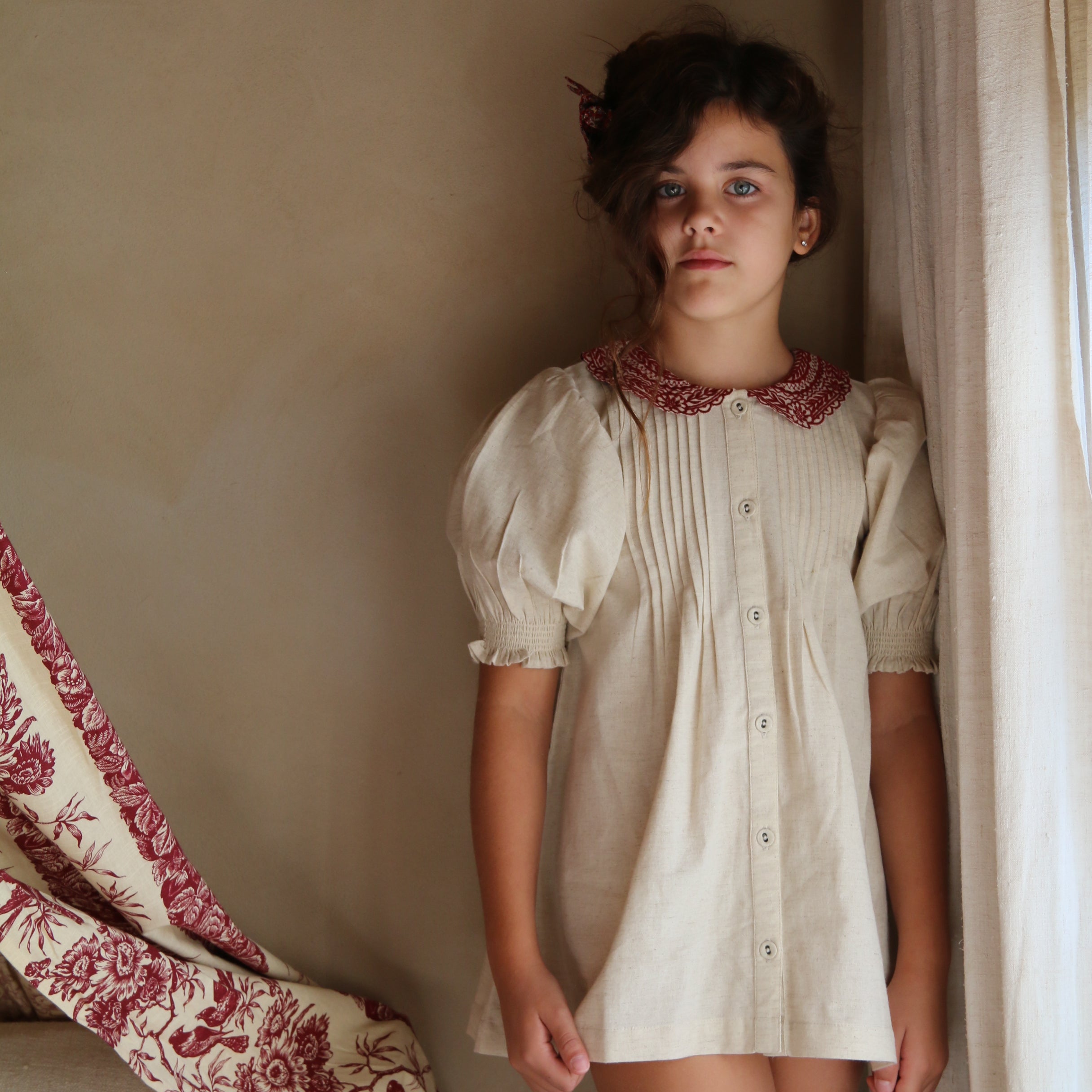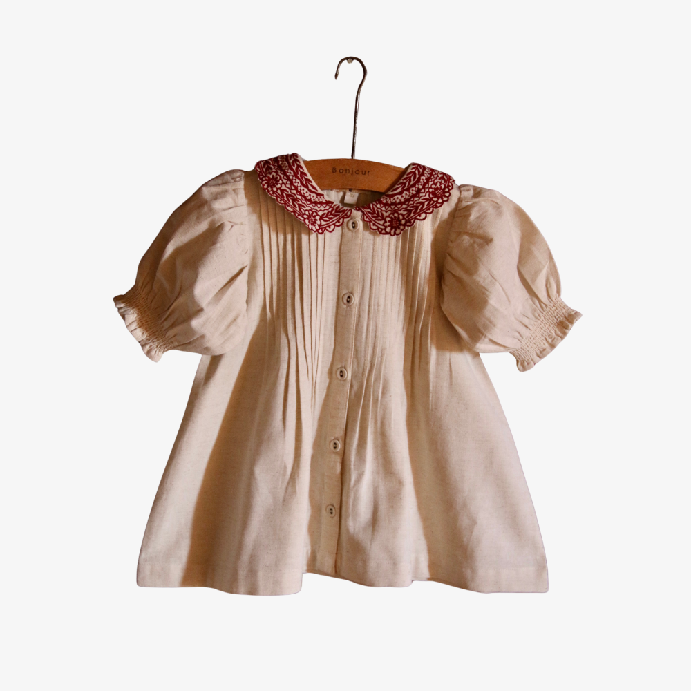 Bonjour Diary Long blouse with emb. collar, Natural cotton flex