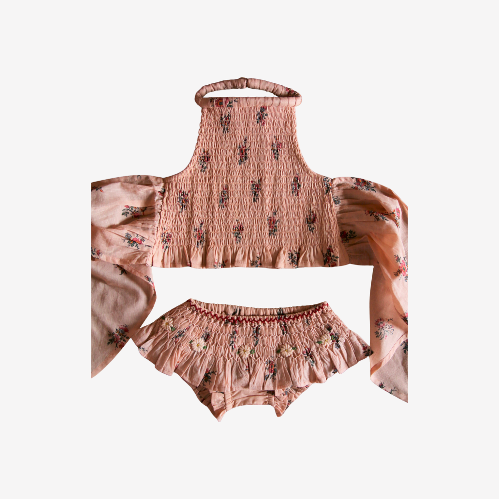 Bonjour Diary Swimsuit, Pink garden flowers print cotton voile