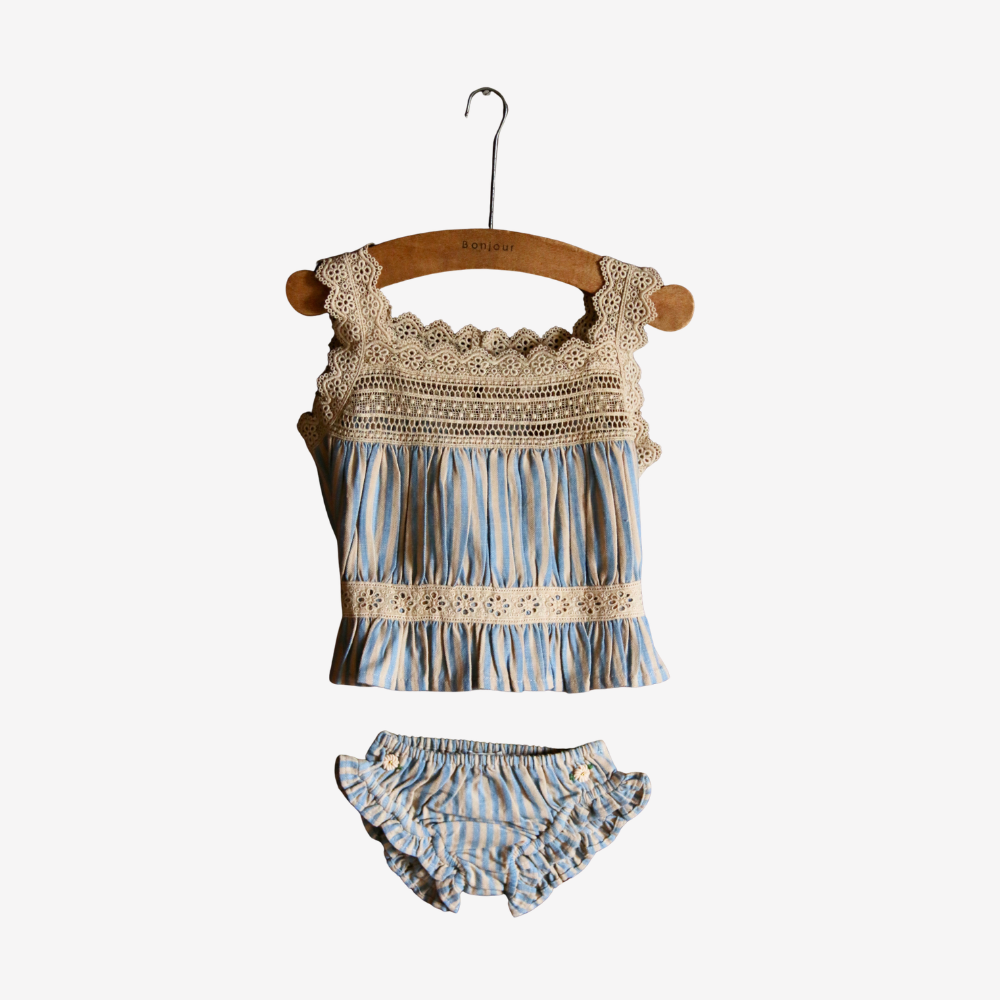 Bonjour Diary Set - top & panty, Blue transat stripe