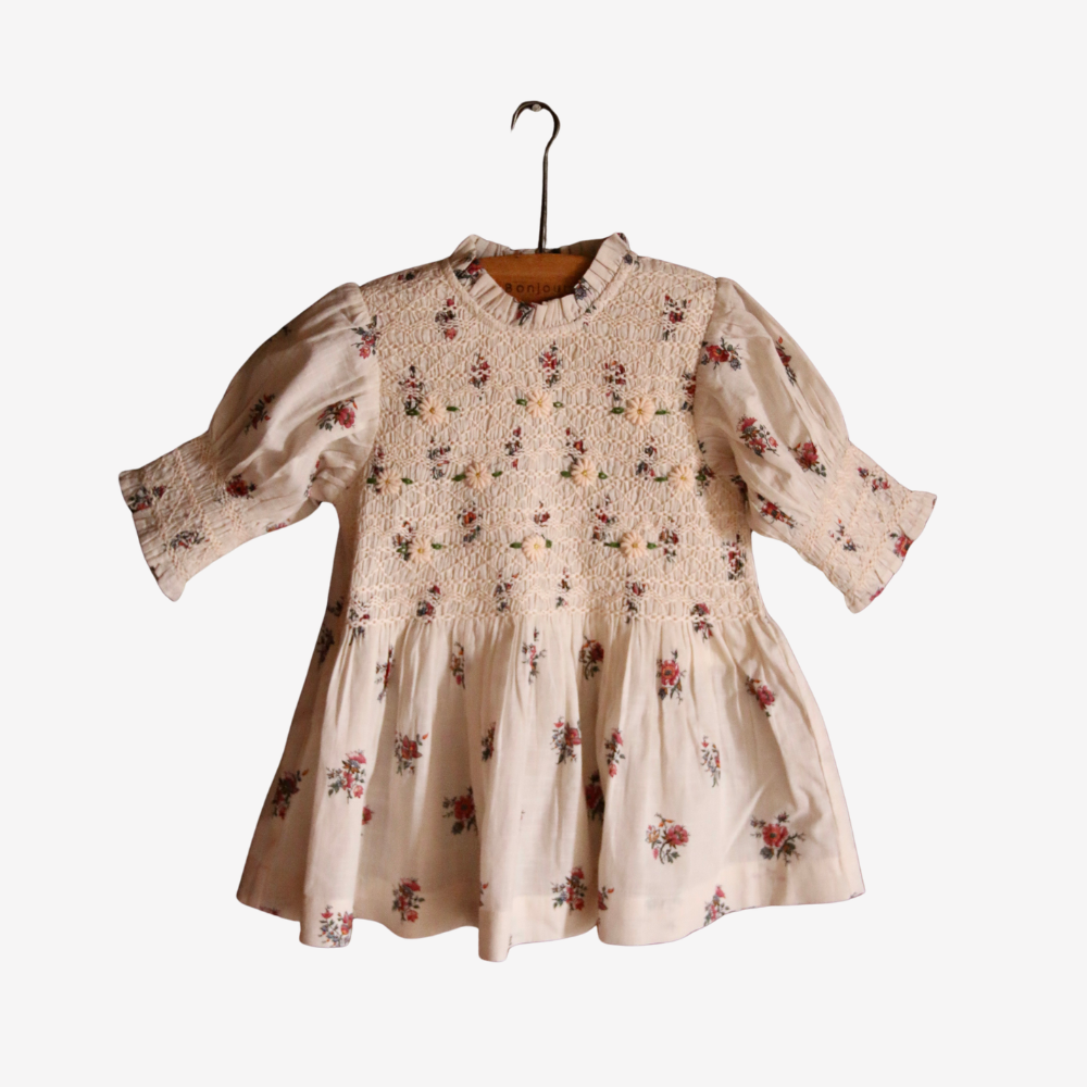 Bonjour Diary Handsmocks blouse Garden flowers print, cotton voile