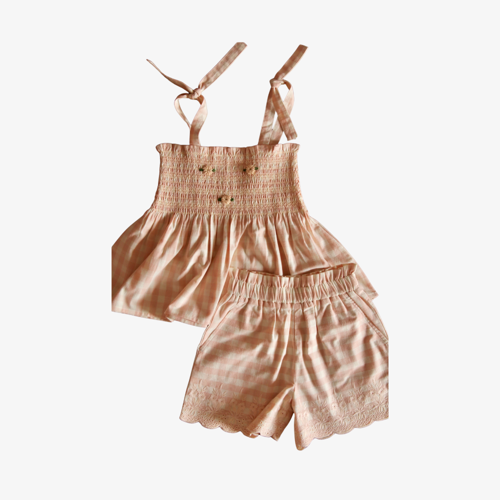Bonjour Diary Shorts & top set, Pink Vichy with small design eyelete emb