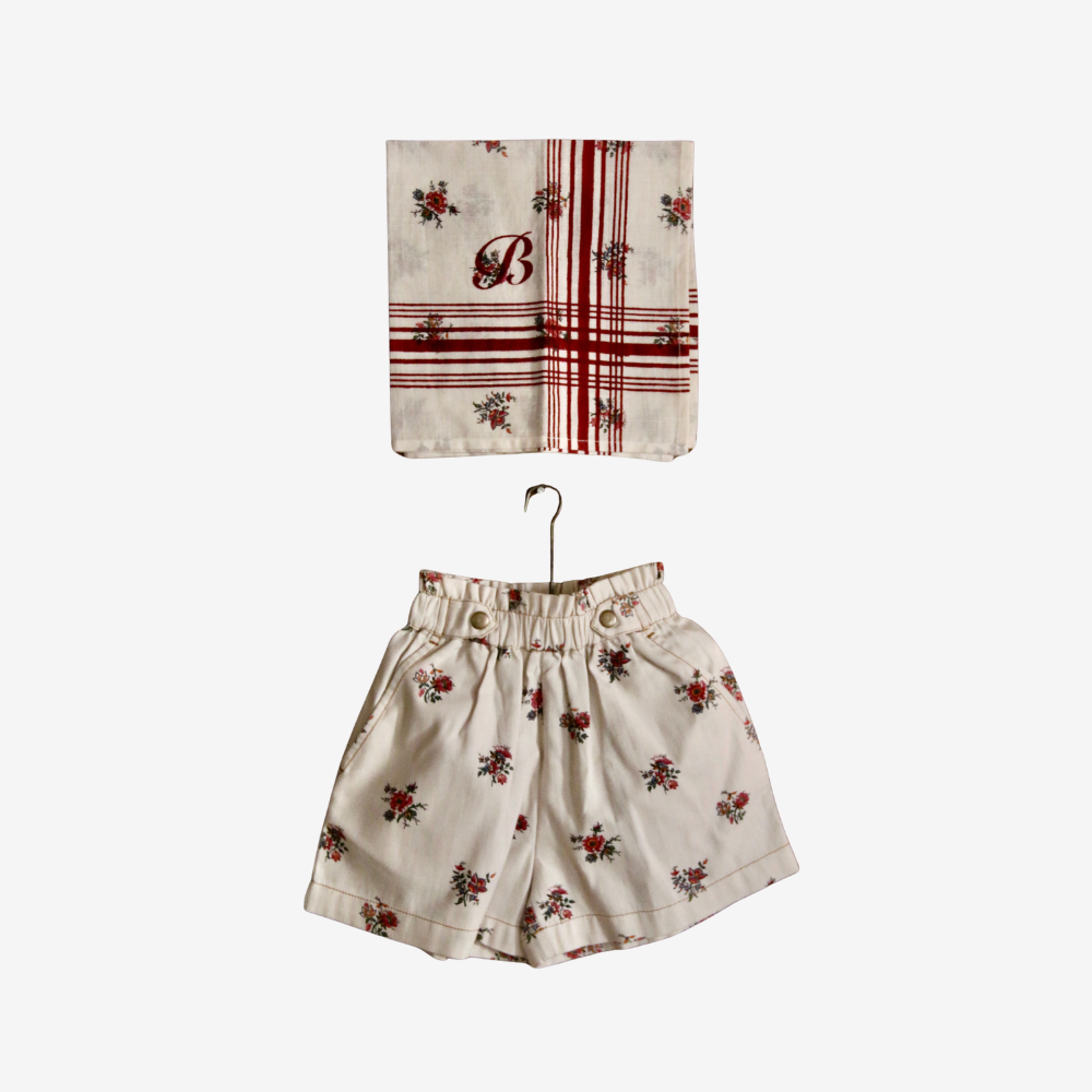 Bonjour Diary Shorts with scarf, Garden flowers print Denim