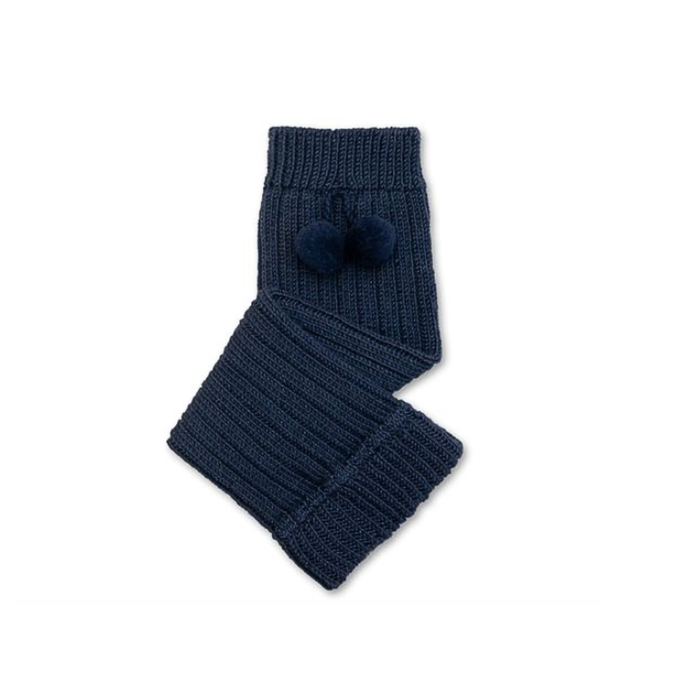 Collegien Eléonore Ribbed Merino Wool Legwarmers with pompoms, Nuit etoilée