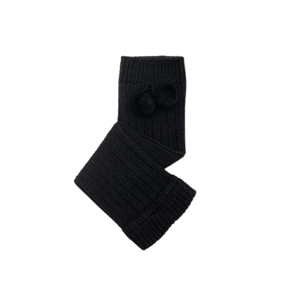 Collegien Eléonore Ribbed Merino Wool Legwarmers with pompoms, Noir de charbon
