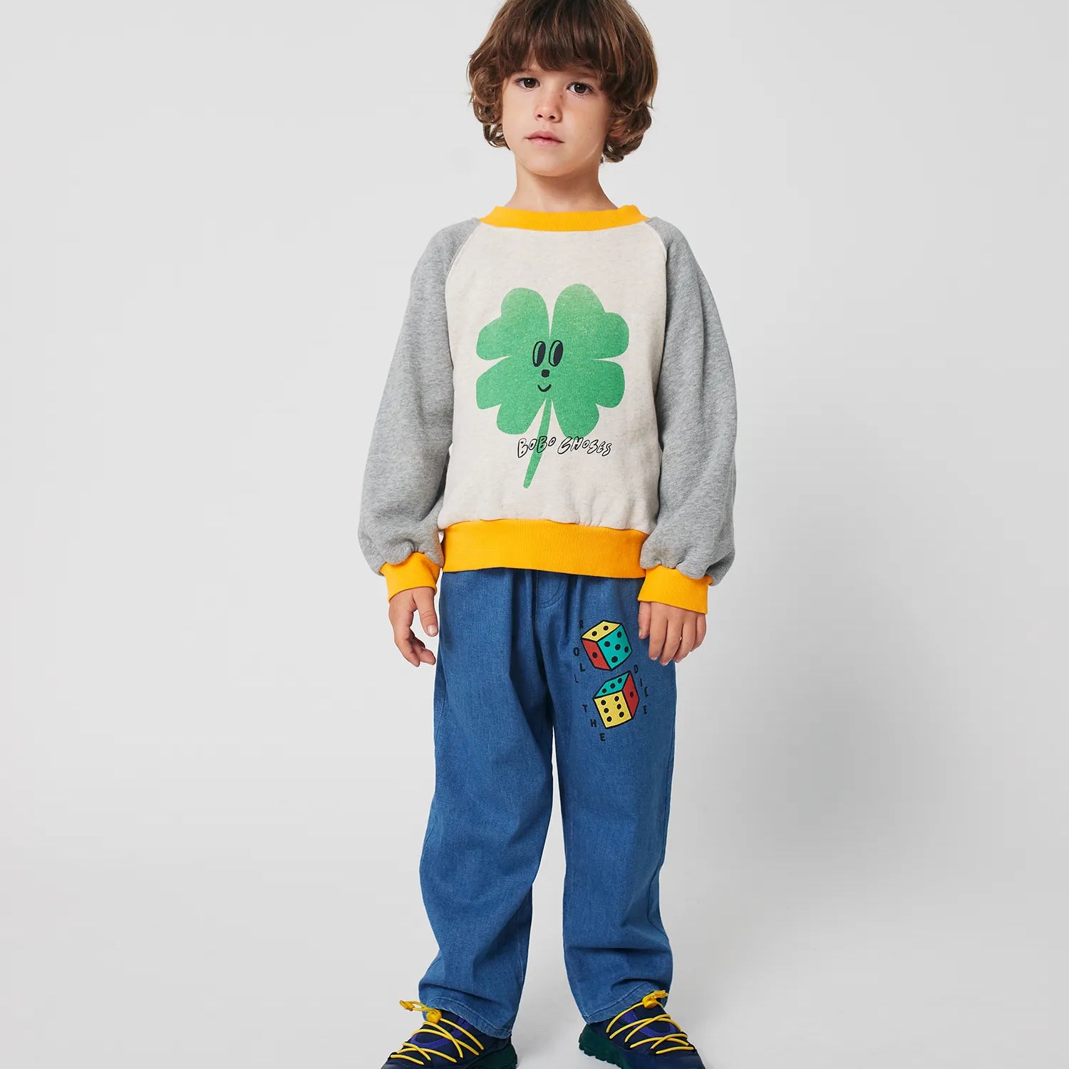 [Pre-order] Bobo Choses Lucky Clover ranglan sweatshirt, Heather grey