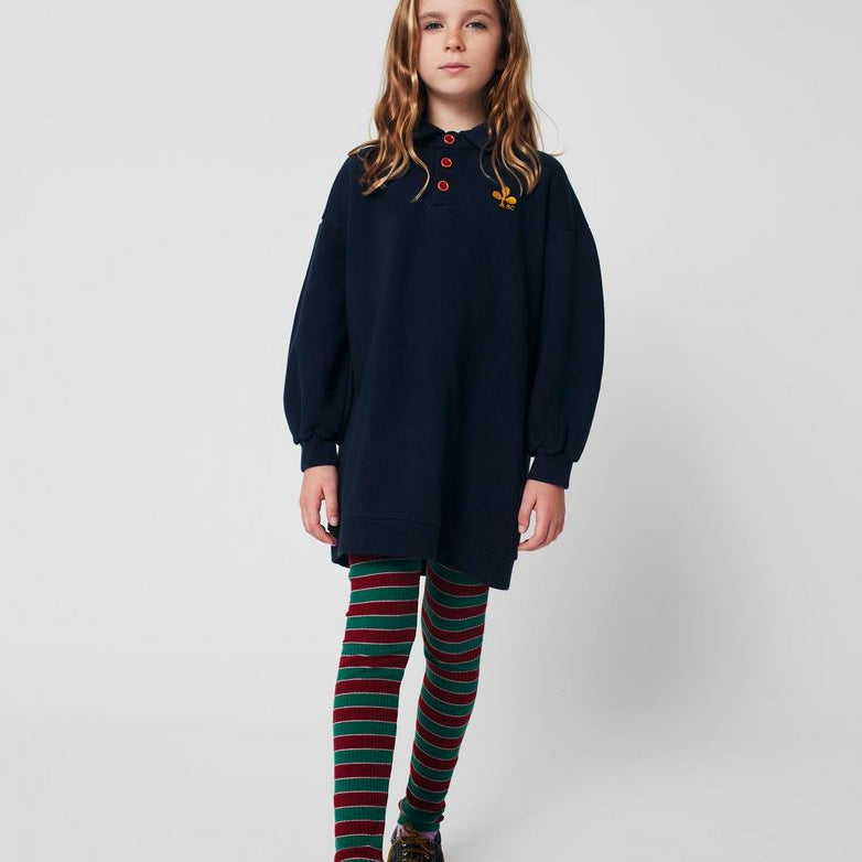 [Pre-order] Bobo Choses Clover polo sweatshirt dress, Midnight blue