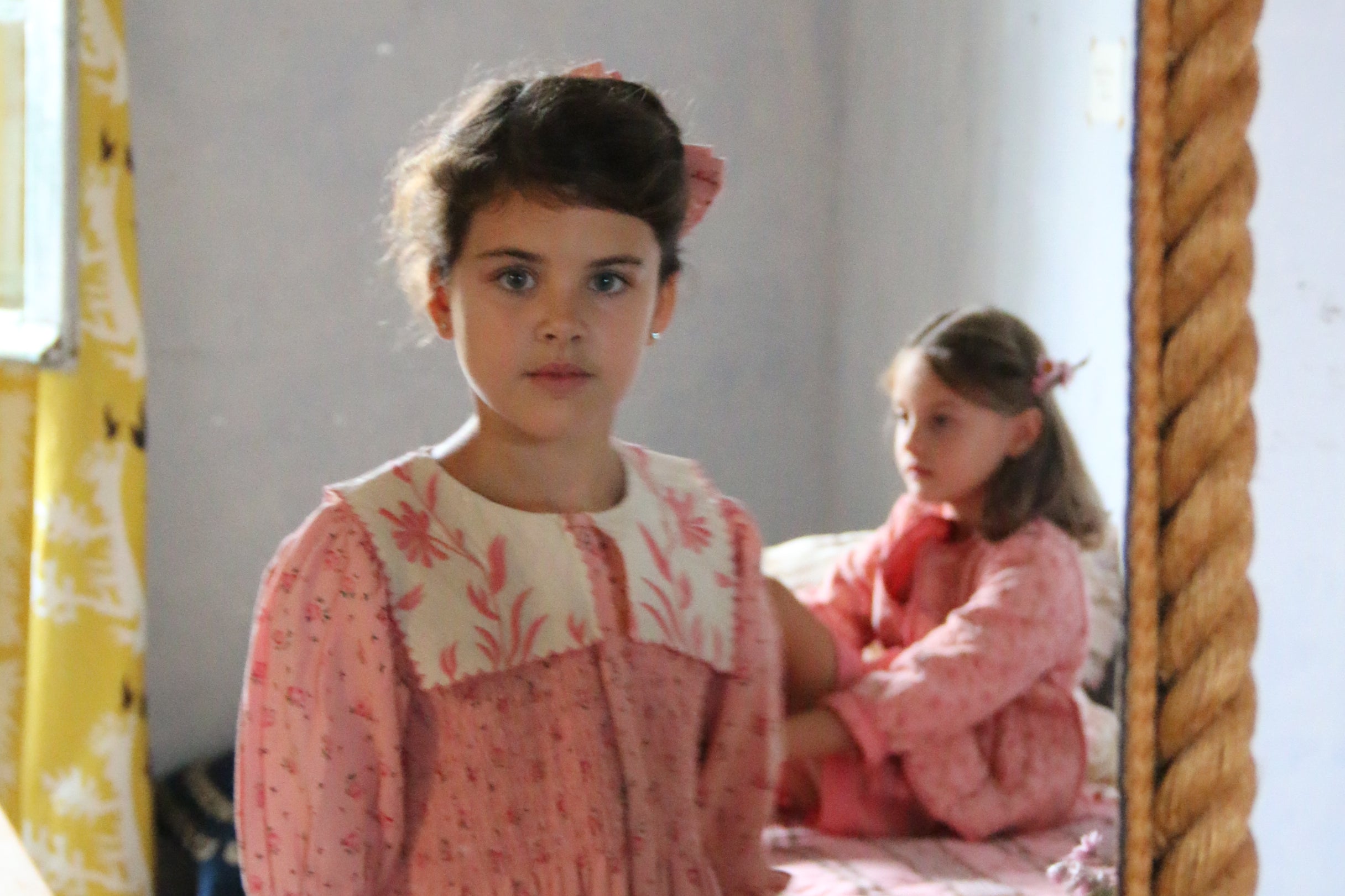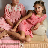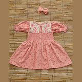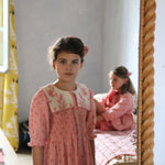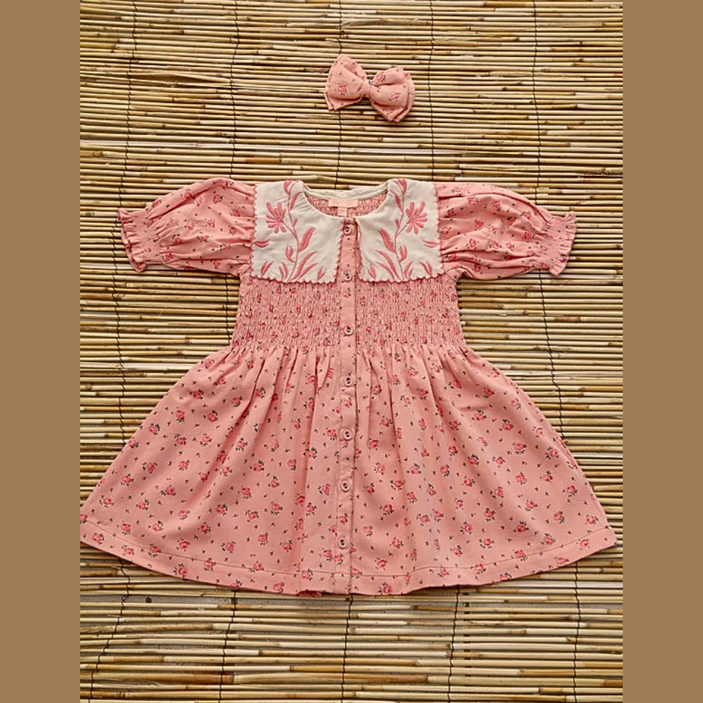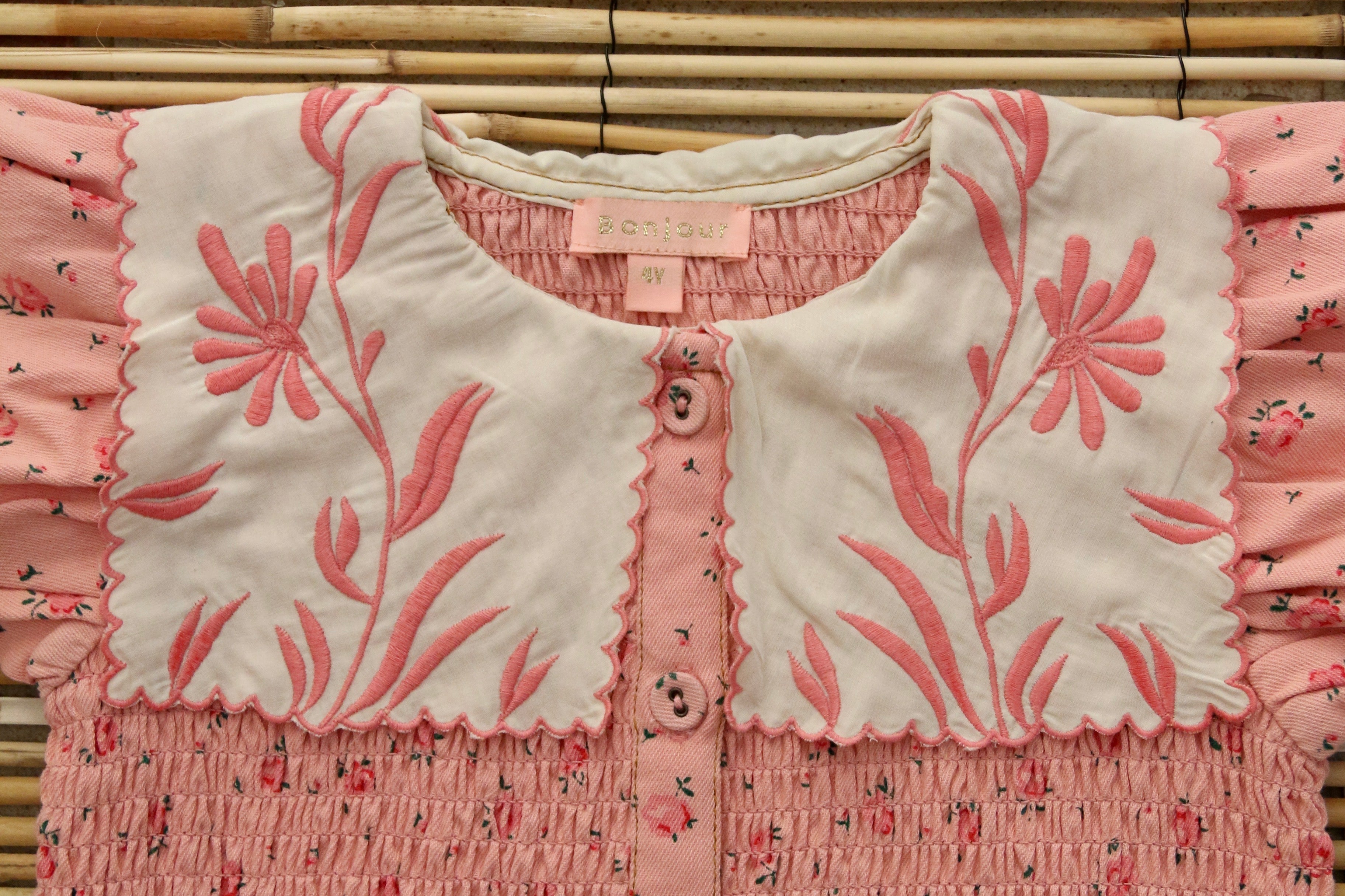 Tinyapple | SS25 Bonjour Diary | Tunique with emb collar & Hairclip, Rosa Bloom print denim