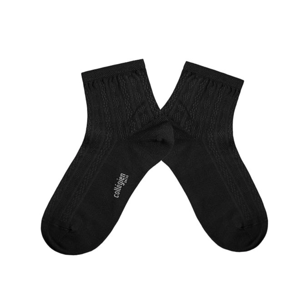 Collegien Antoinette Lightweight Pointelle Socks, Noir de Charbon