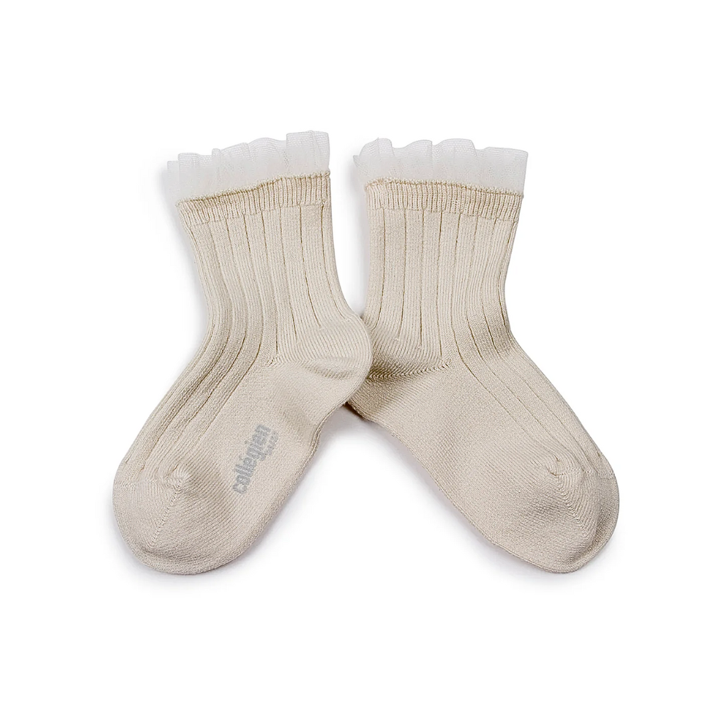 Margaux - Short ribbed socks with tulle flounce