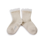 Collegien Margaux Tulle Frill Ribbed Ankle Socks, Doux Agneaux