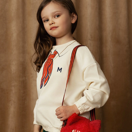 Sweatshirt made from 100 % GOTS certified organic cotton. Designed for a relaxed fit with dropped shoulders, finished with elastic trims. Decorated with a contrasting scarf and collar print, finished with and an M embroidery in front.