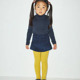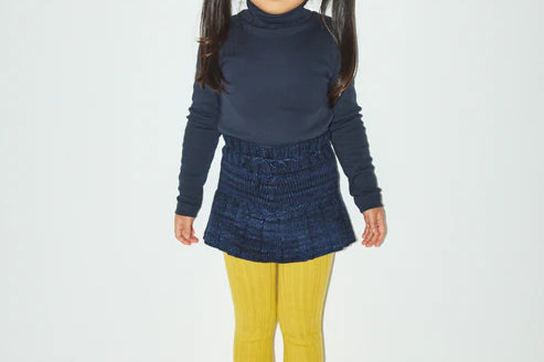 | Tinyapple | FW25 Winter Misha & Puff | Skating Pond Skirt, InkA hand-knit skirt in Merino wool, featuring attached bloomers with ribbed cuffs and a ribbed waistband with a popcorn tie drawstring for a secure fit.100% Merino WoolK1003E01-420