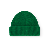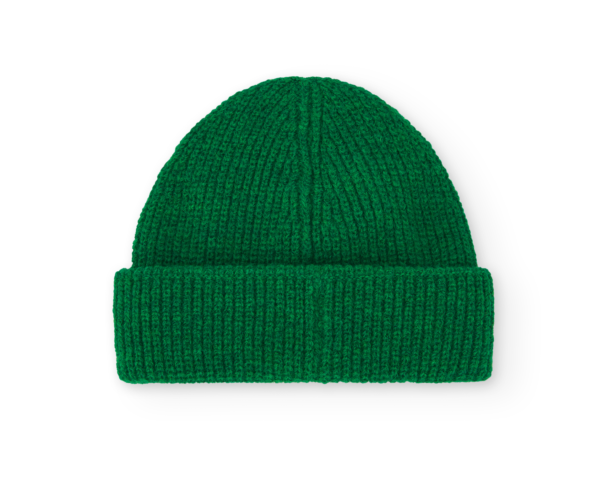 Cozy green beanie, soft and snug, ideal for keeping warm on chilly days.