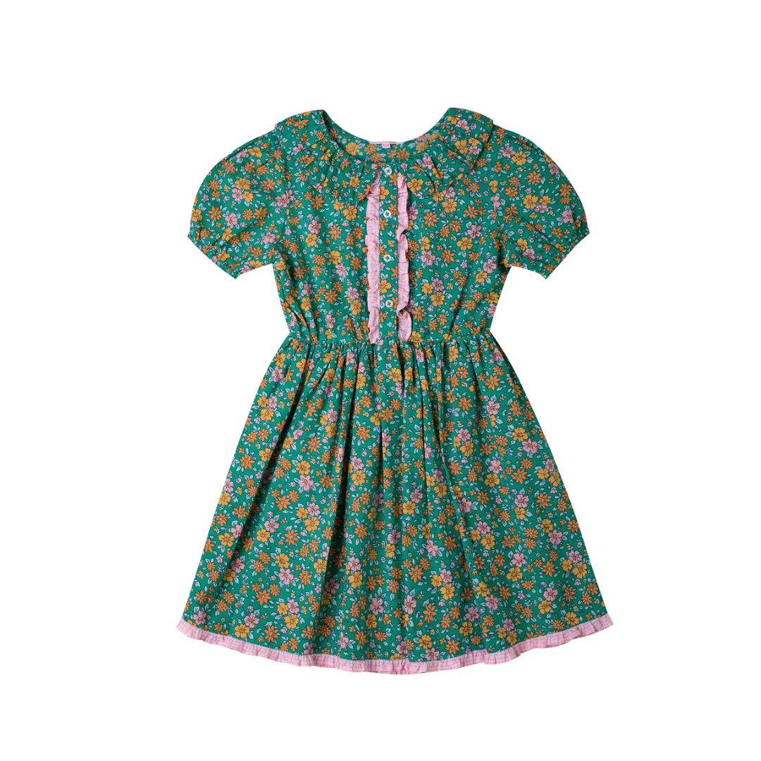 Kidsagogo Poeme Dress, Florale Green Mini Vichy Camelia