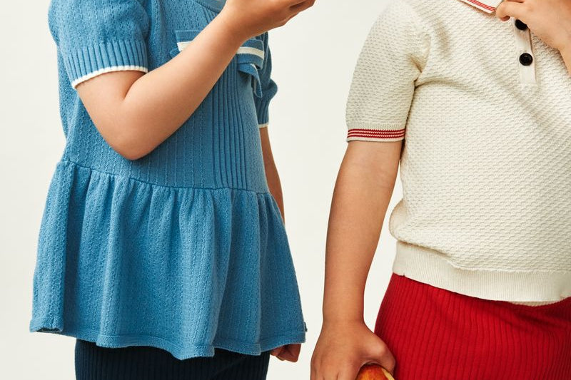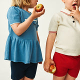 These shorts are knitted in a structured pattern with a wide waistband featuring decorative contrast color stripes. The shorts are cut with a relaxed fit and rib hem with an elasticated waistband to ensure a comfortable and adjustable fit. Soft and comfortable designed to slip-on. Made from organic cotton.