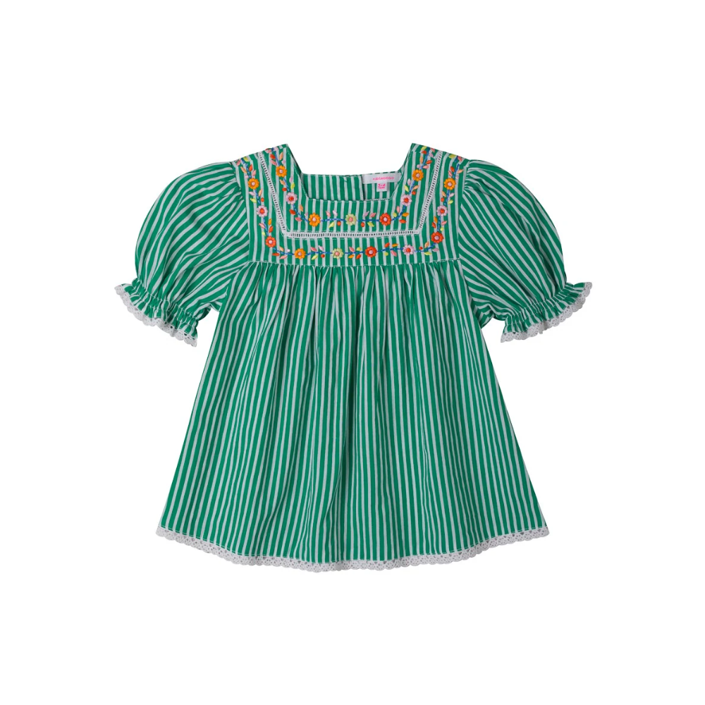 [PRE-ORDER] Kidsagogo Paolina Top, Meadow Green Stripe