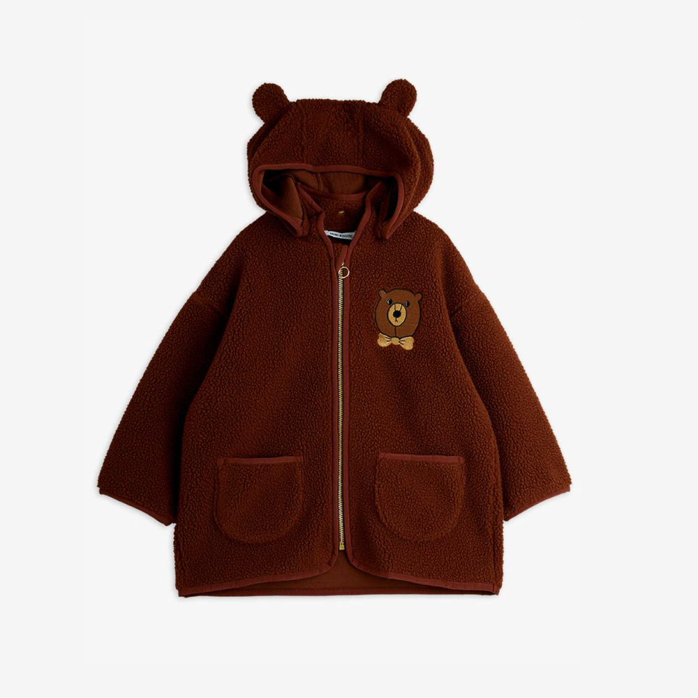 [Pre-order] Mini Rodini Bear emb pile jacket, Brown