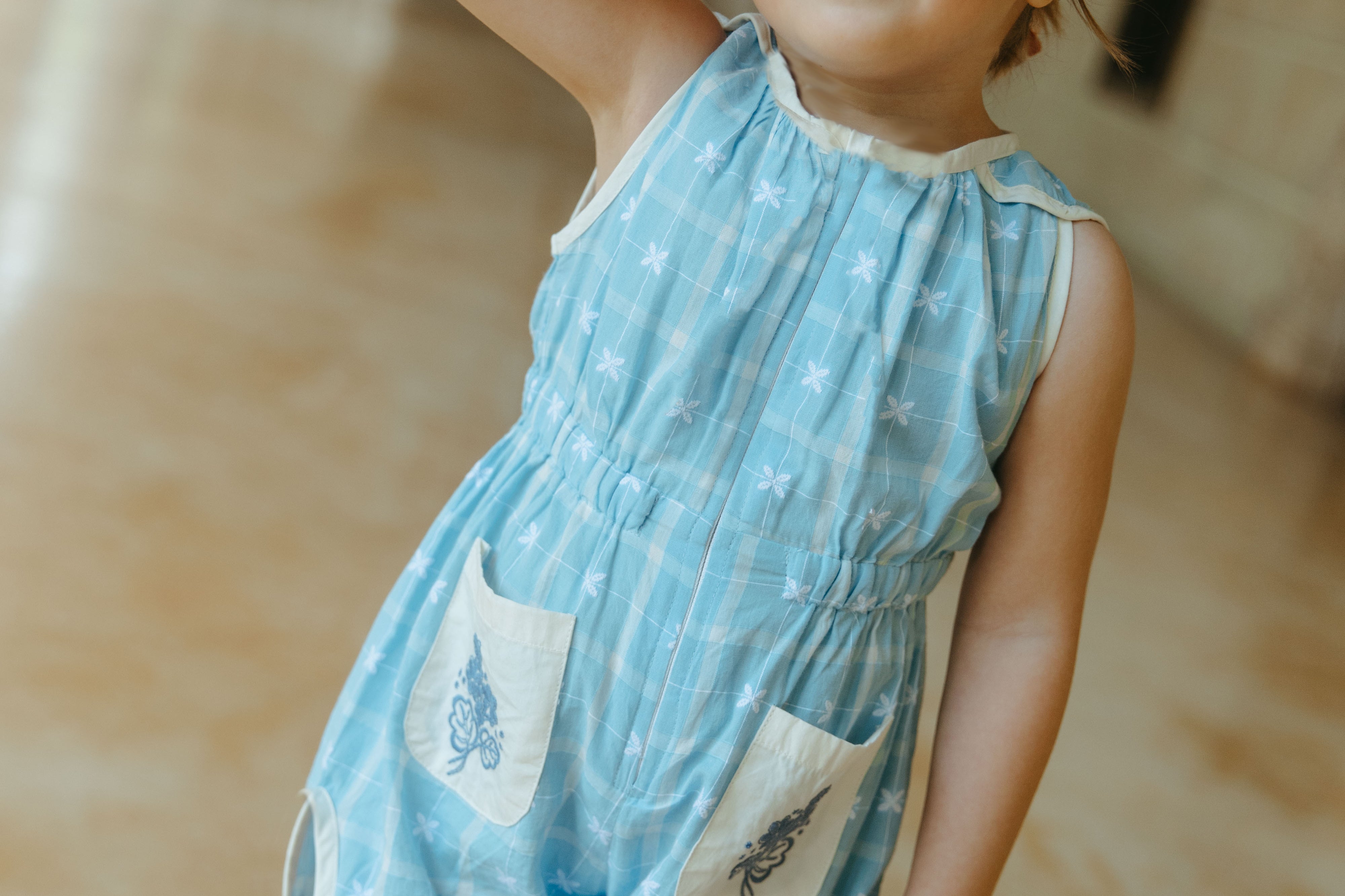 The Sun Suit Romper is a vintage-inspired favorite made for everyday wear, with an easy, playful shape kids can move in. Designed with a front zipper for quick changes and easy potty breaks, it’s finished with sweet embroidered pockets for the perfect touch of Lali charm.