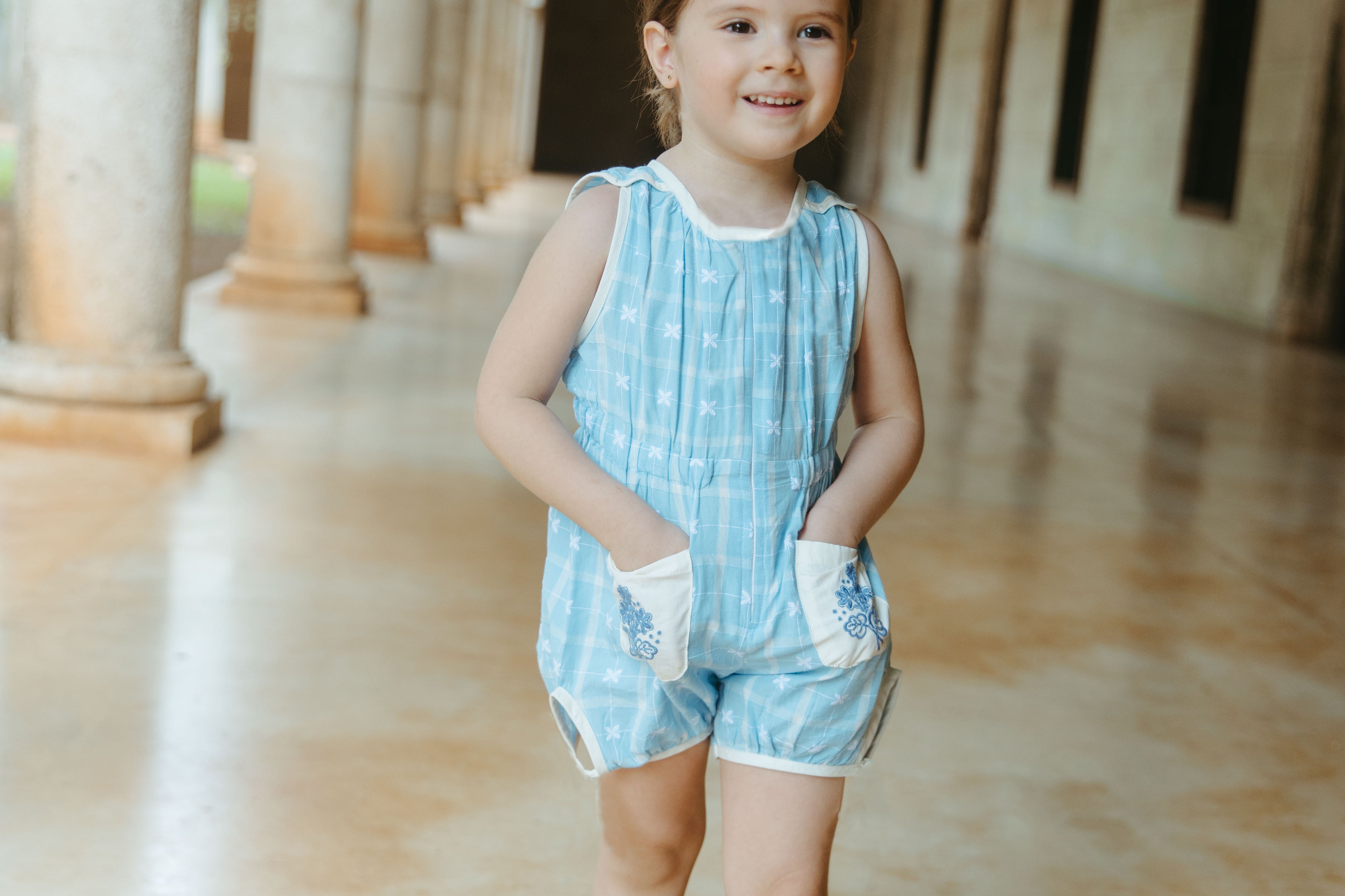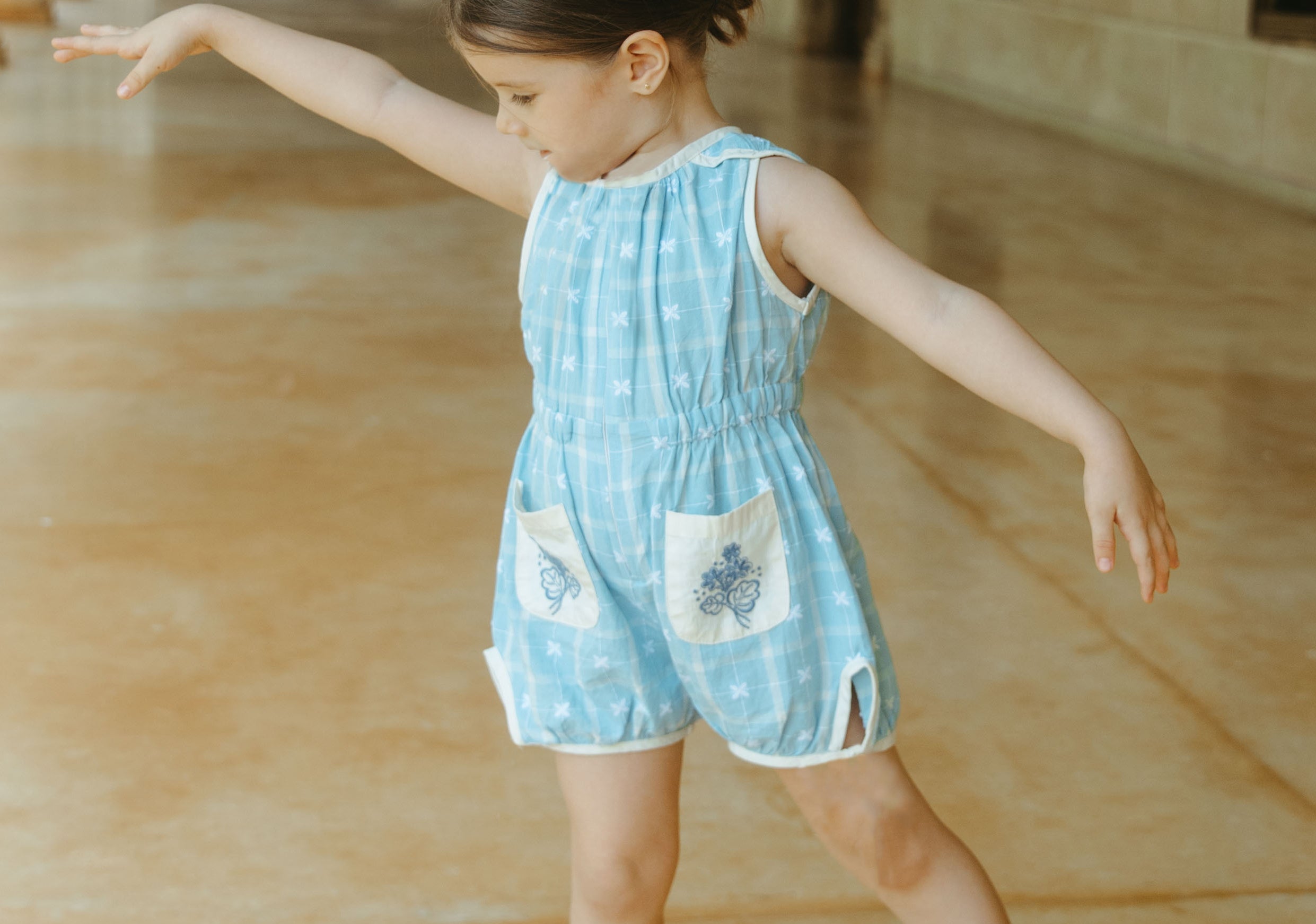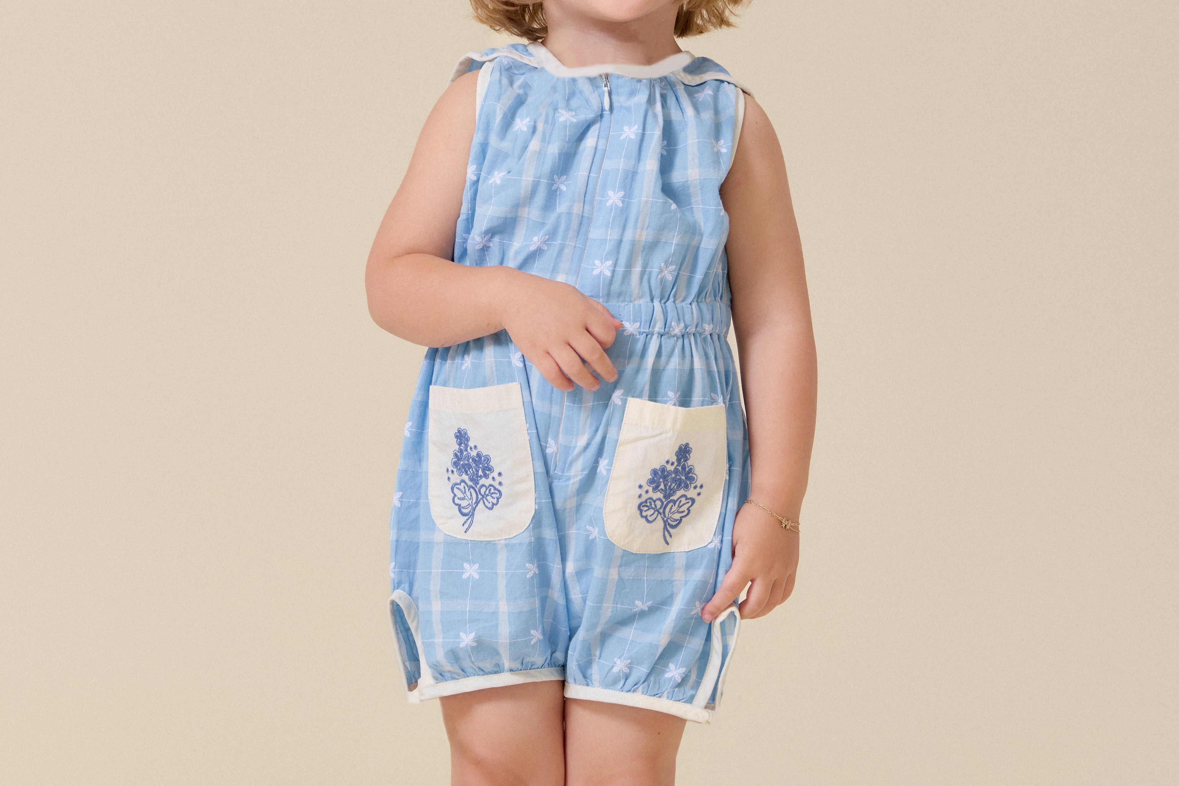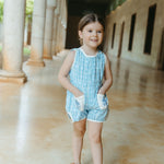 TINYAPPLE | SS26 LALI | Sun Suit Romper, Vintage Blue Plaid