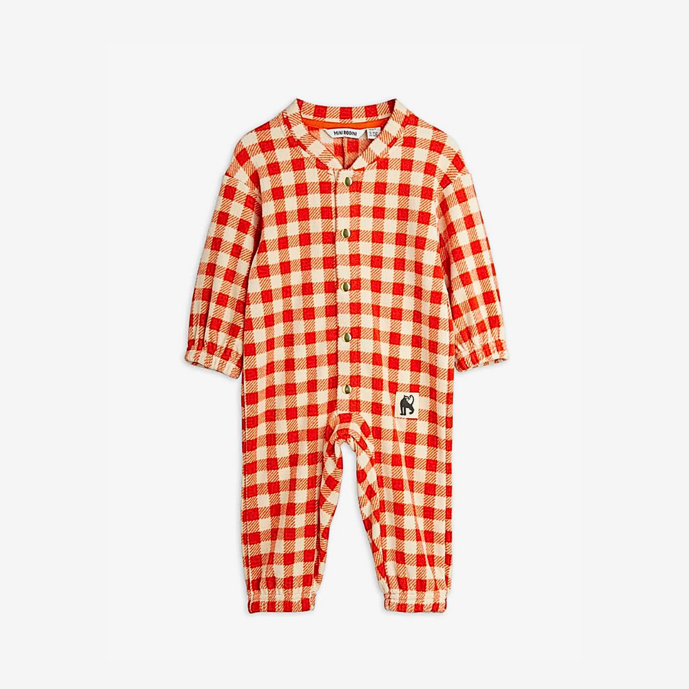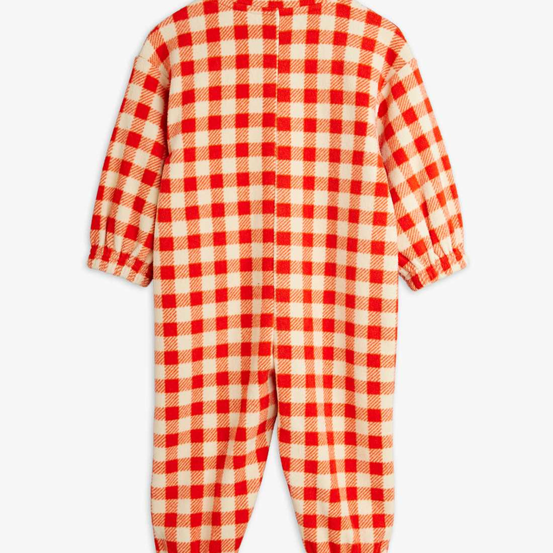 [Pre-order] Mini Rodini Baby Gingham aop fleece overall baby, Red