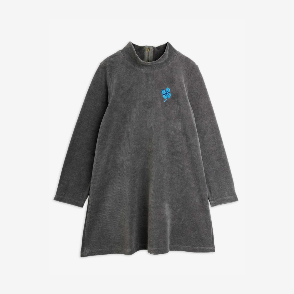 [Pre-order] Mini Rodini Clover emb velour dress, Grey