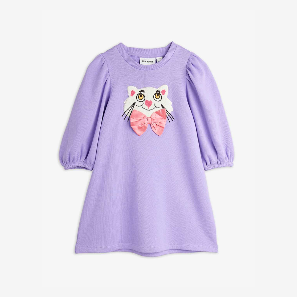 [Pre-order] Mini Rodini Cat with bowtie chenille sweatdress, Purple