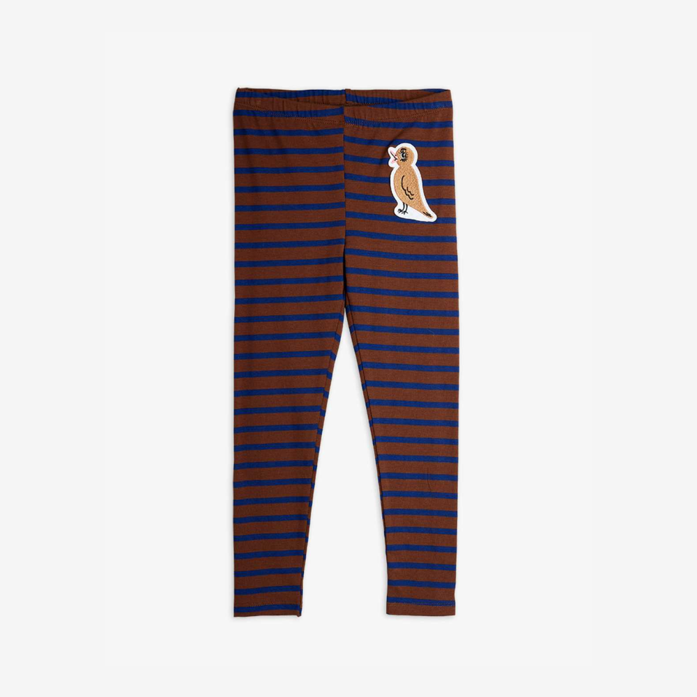 [Pre-order] Mini Rodini Stripe bird patch leggings, Brown