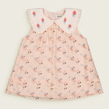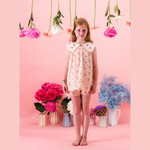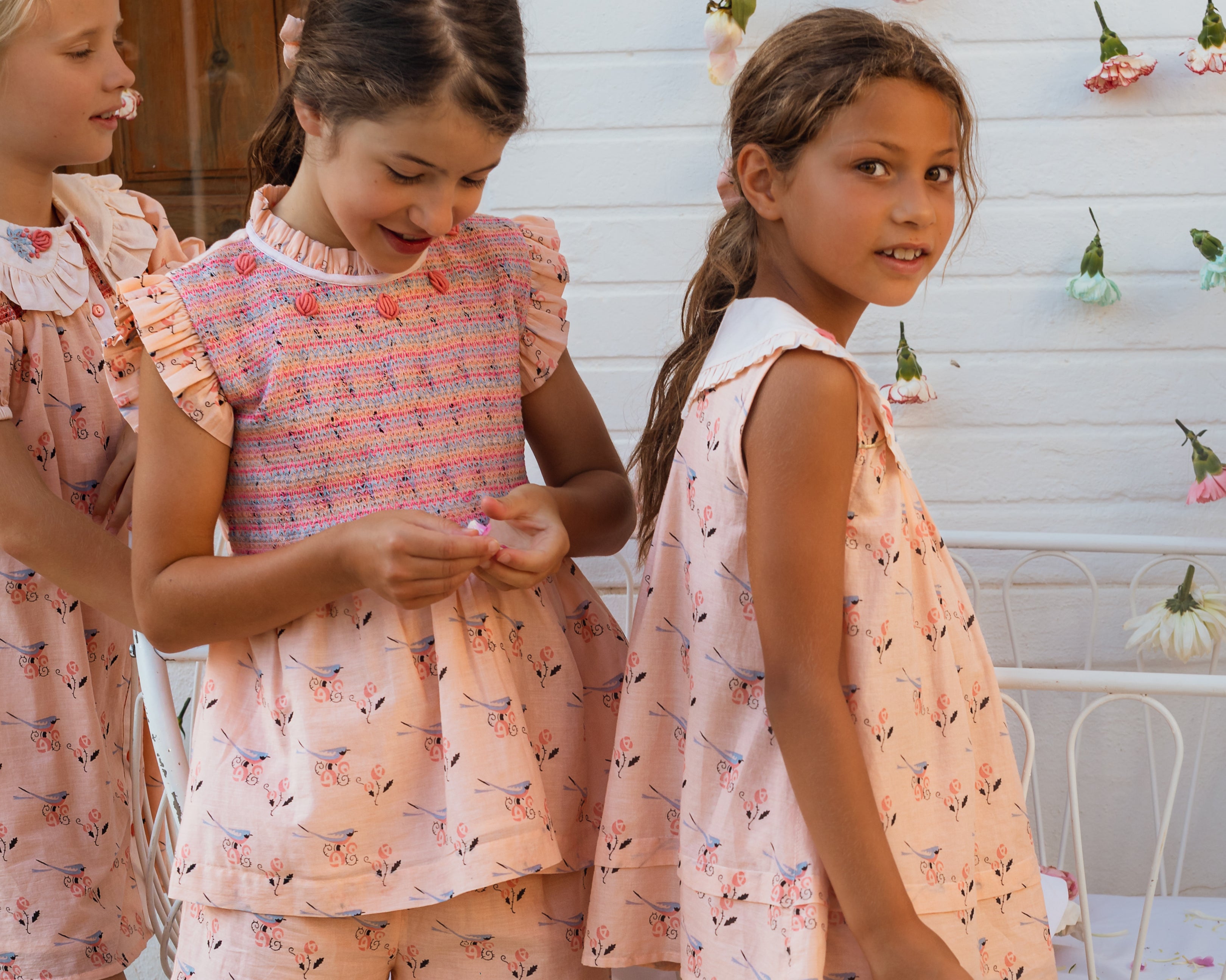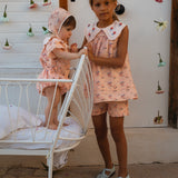 A blouse and shorts set in organic cotton with hand embroidery on the collar.