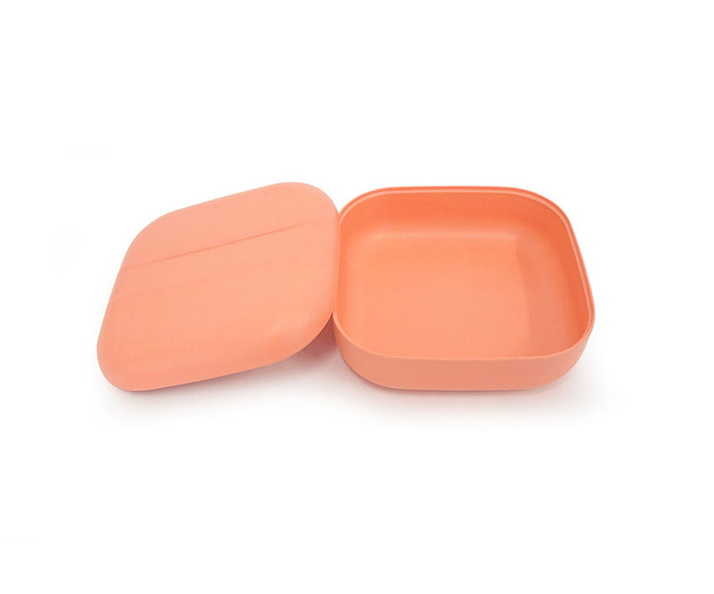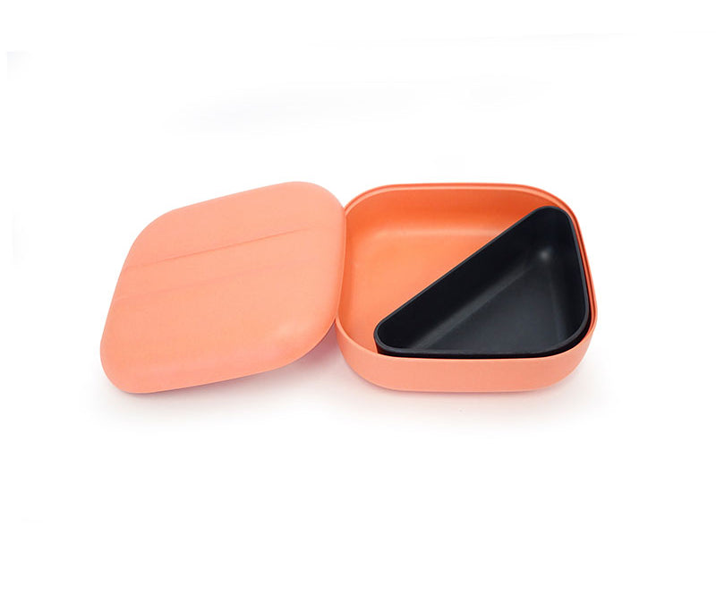Adios plastic baggies. Hello EKOBOâs new bamboo fibre Bento Lunch Box! Designed for snacks or meals to go, inside are 2 removable containers to separate snacks or sides. Remove 1 or both for a full or half sandwich; its top doubles as a plate and itâs held firmly closed by a black silicone band.
