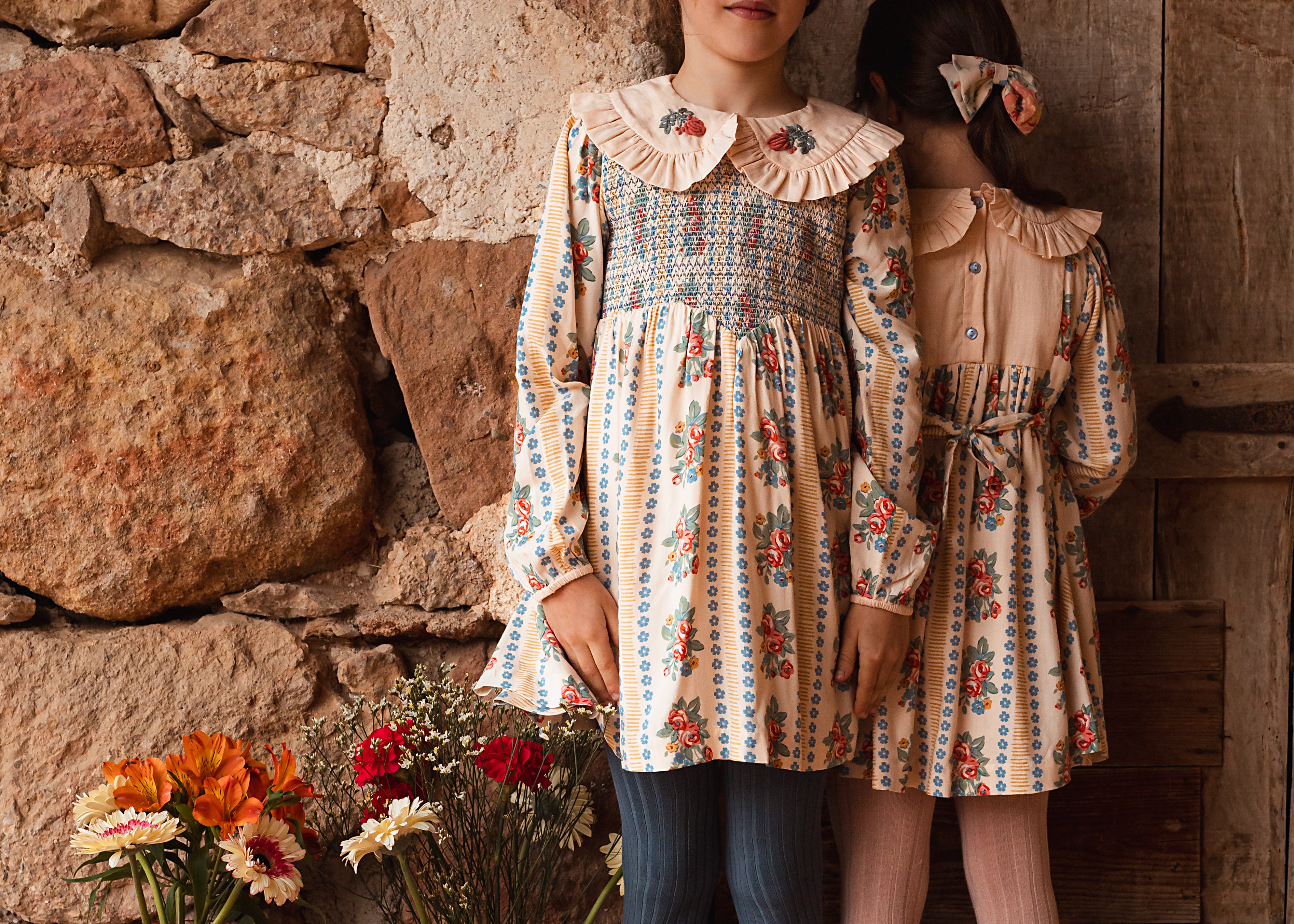 A dress in 100% ECOVERO® Viscose with smocked front and a hand embroidered collar.