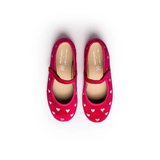 The Carrie Pink Mary Jane from our limited edition holiday collection, with Roller Rabbit. This classic Mary Jane shoe features soft pink velvet and Roller Rabbit’s signature hearts print, combining timeless craftsmanship with whimsical, festive style. Perfect for little girls holiday parties, special occasions, and everyday twirls, these shoes are designed for comfort, style, and holiday magic. Make every step memorable with Roller Rabbit for Children Chic.