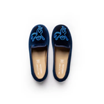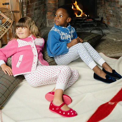 The Verona Navy Slip-on from our limited edition holiday collection, with Roller Rabbit. Our acclaimed navy velvet, now embroidered with Roller Rabbit’s signature monkey, brings playful charm to this classic style. These shoes are perfect for holiday parties, special occasions, and everyday twirls. Designed for comfort, style, and holiday magic, make every step memorable with Roller Rabbit for ChildrenChic.