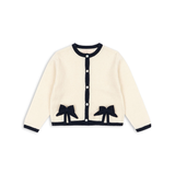 Soft 100% wool cardigan with bow detailing. Classic design with round neck, contrast edges, and mother of pearl buttons.100% WOOLKS104379