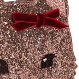 Shoulder bag shaped like a sparkling little kitty with cute ears and a decorative velvet bow. Designed with a slim shoulder strap and easy zipper closure. Perfect for carrying all your little essentials over the shoulder. Suitable from 3yr + Please note: Be aware of long cords and small parts.