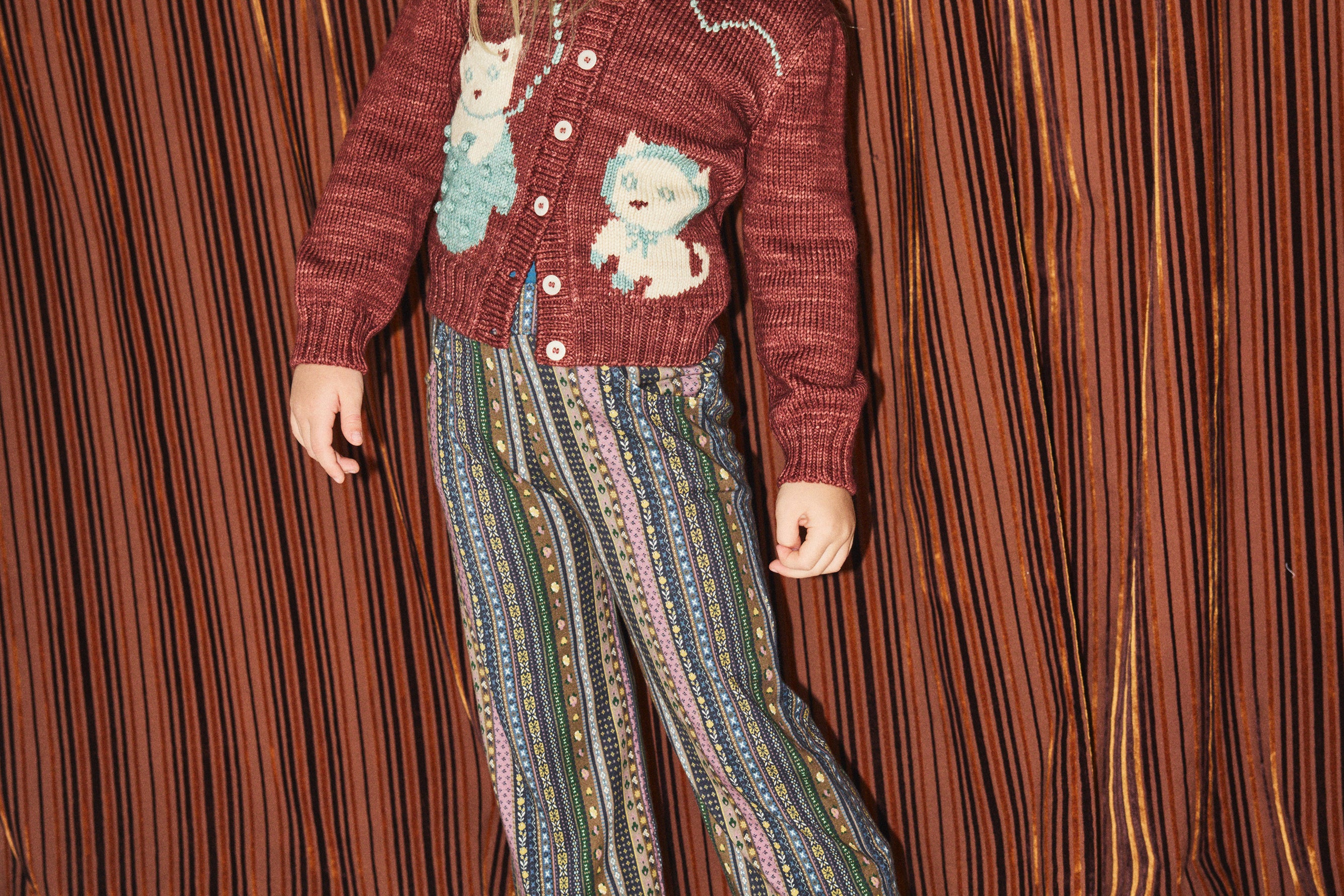 | Tinyapple | FW25 Winter Misha & Puff | A-Pant, Ink RibbonsA fitted pull-on pant in organic Pima cotton, featuring a slight A-shaped flare, front pockets, and a soft banded elastic waistband.100% Organic Pima CottonK3018W25-0A0