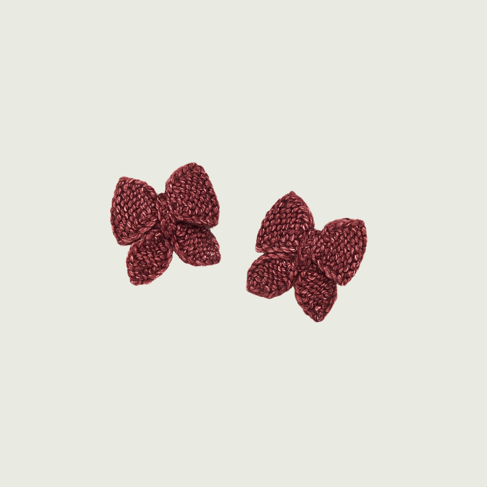 A hand-knit bow set in Merino wool, mounted on alligator clips. Perfect for matching your favorite knitwear, adding a pop of color, or gifting to a friend.