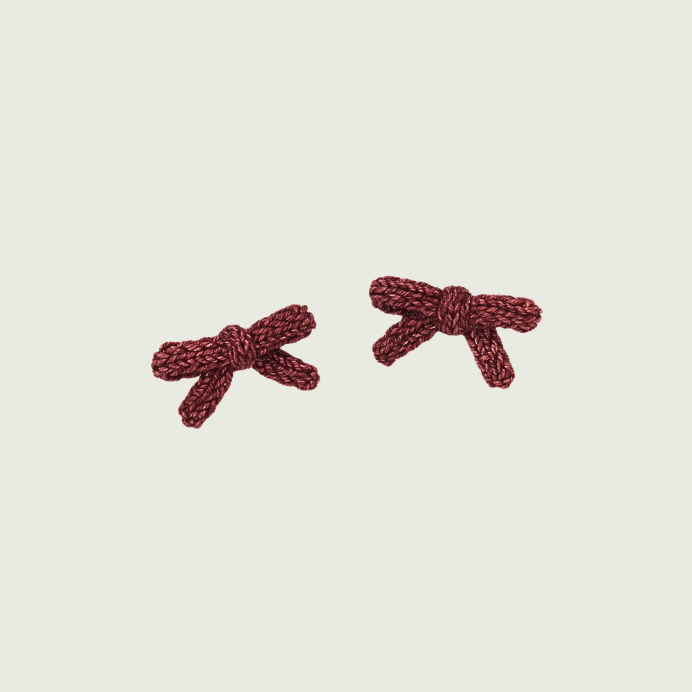 A hand-knit slim bow set in Merino wool, mounted on alligator clips. Perfect for matching your favorite knitwear, adding a pop of color, or gifting to a friend.