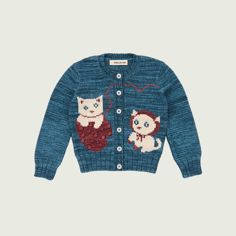 | Tinyapple | FW25 Winter Misha & Puff | Three Little Kittens Cardigan, Blue Smoke