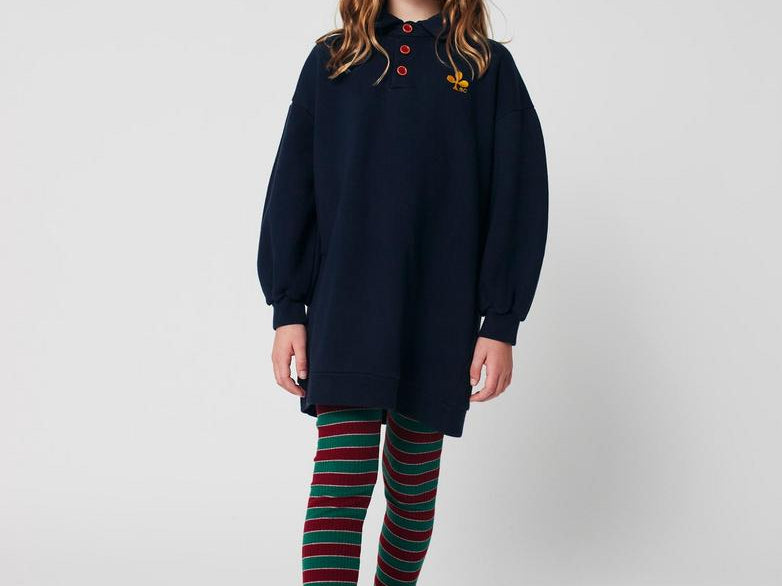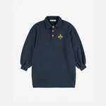 [Pre-order] Bobo Choses Clover polo sweatshirt dress, Midnight blue