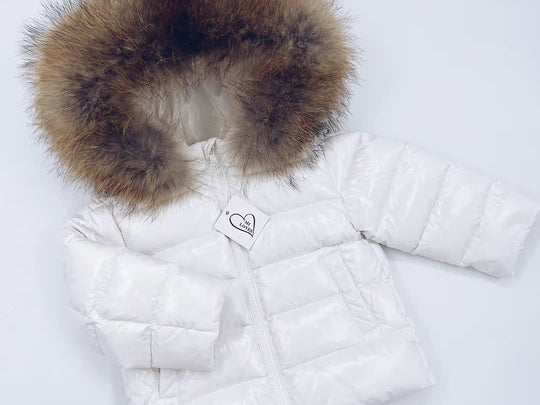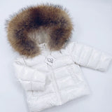 [PRE-ORDER] Mi Loves Racoon fur trim puff jacket, White