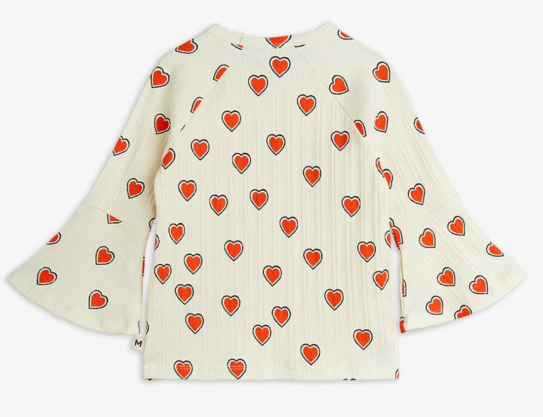 [Pre-order] Mini Rodini Outlined hearts aop trumpet sleeve top, Off-white