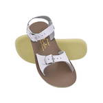 The Sun-San Surfer is a classic two-strap sandal that’s perfect for younger feet. An adjustable toe buckle and ankle strap make them great for both wide and narrow feet. Wear them comfortably all day long — thanks to the lightweight, cushioned urethane sole. Rust-proof brass buckles and scuff-resistant water-friendly genuine leather make them ideal for in-and-out-of-water wear. They clean up so easily and with proper care, they will last for years.
