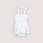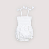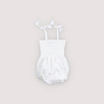Tinyapple | SS26 The New Society | Baby Sakura Romper, Pure CloudRomper in beautiful embroidered cotton quality with smocking on the bodice and a ruffled hem. It features elastic cuffs and adjustable straps.COTTON/POLYS26AHB1P340
