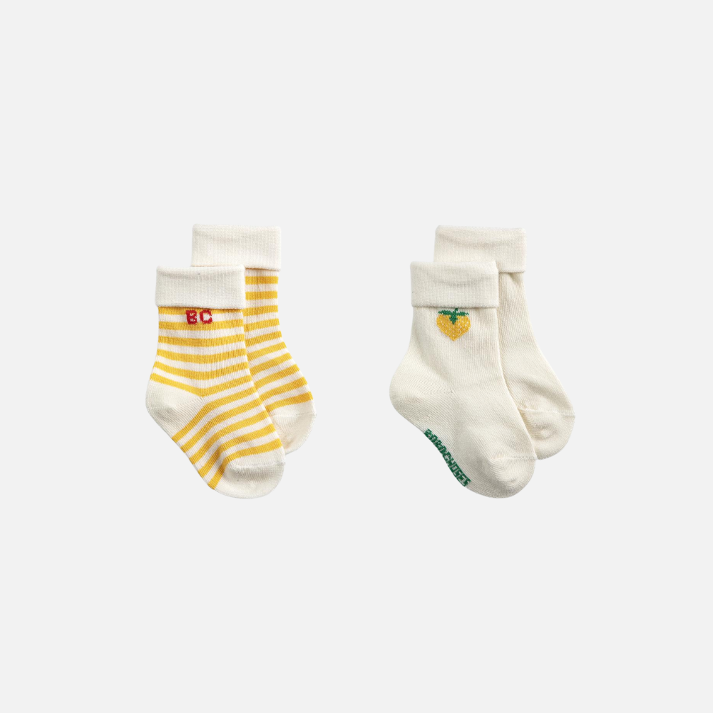 Bobo Choses Baby Pixel Strawberry short socks pack x 2, White